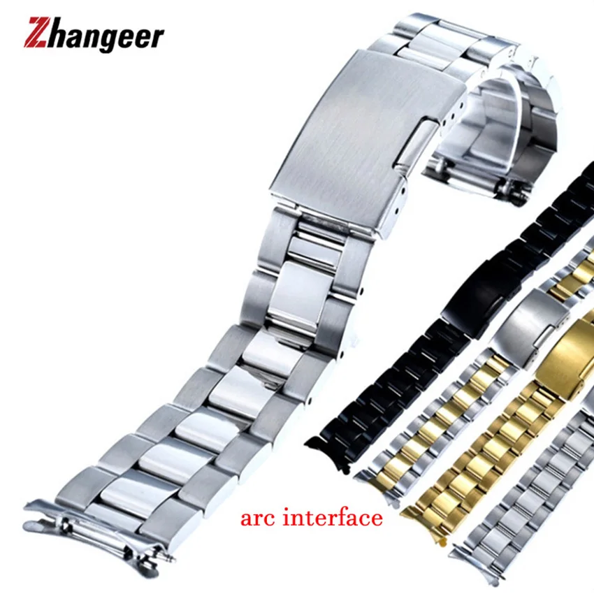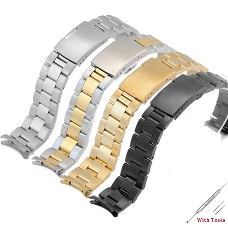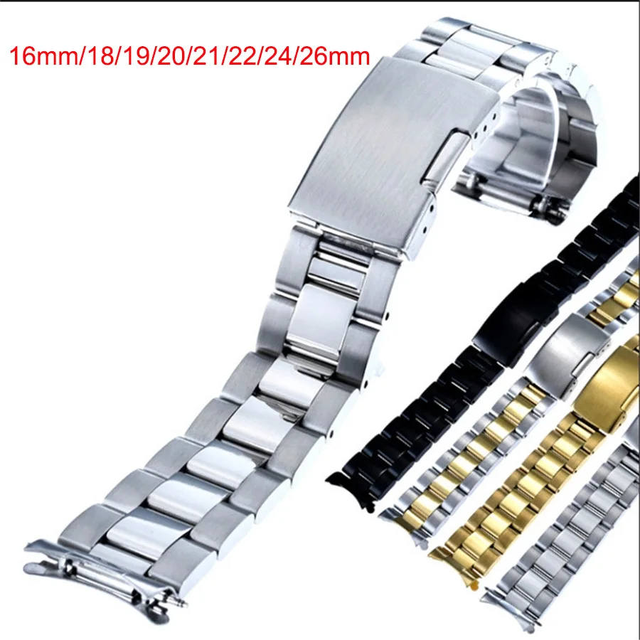 16 мм 18 19 20 21 22 24 26 мм браслеты изогнутый дугой интерфейс Нержавеющая сталь ремешок для часов Складная пряжка с инструментом аксессуары для часов