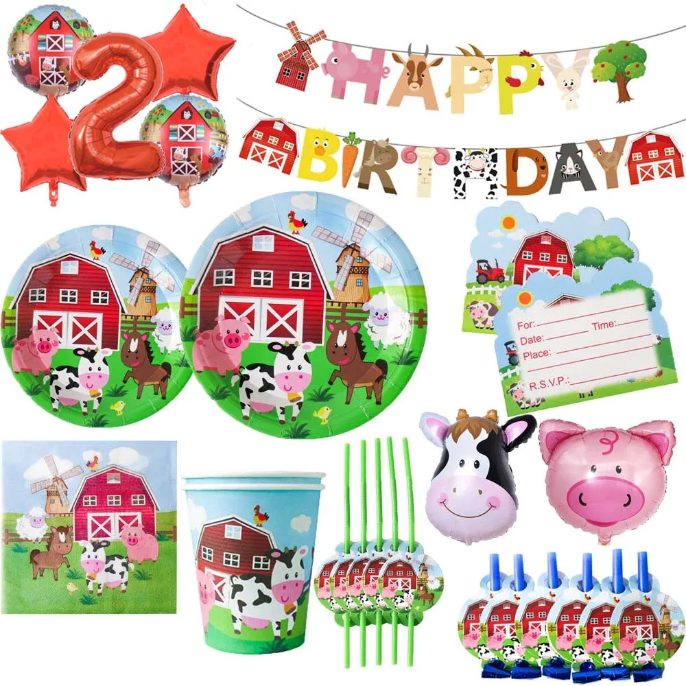 Ферма животные принадлежности для тематической вечеринки коробка приглашение потолок висит соломинки мешки торт Топпер бутылка этикетка баннер украшение для вечеринки