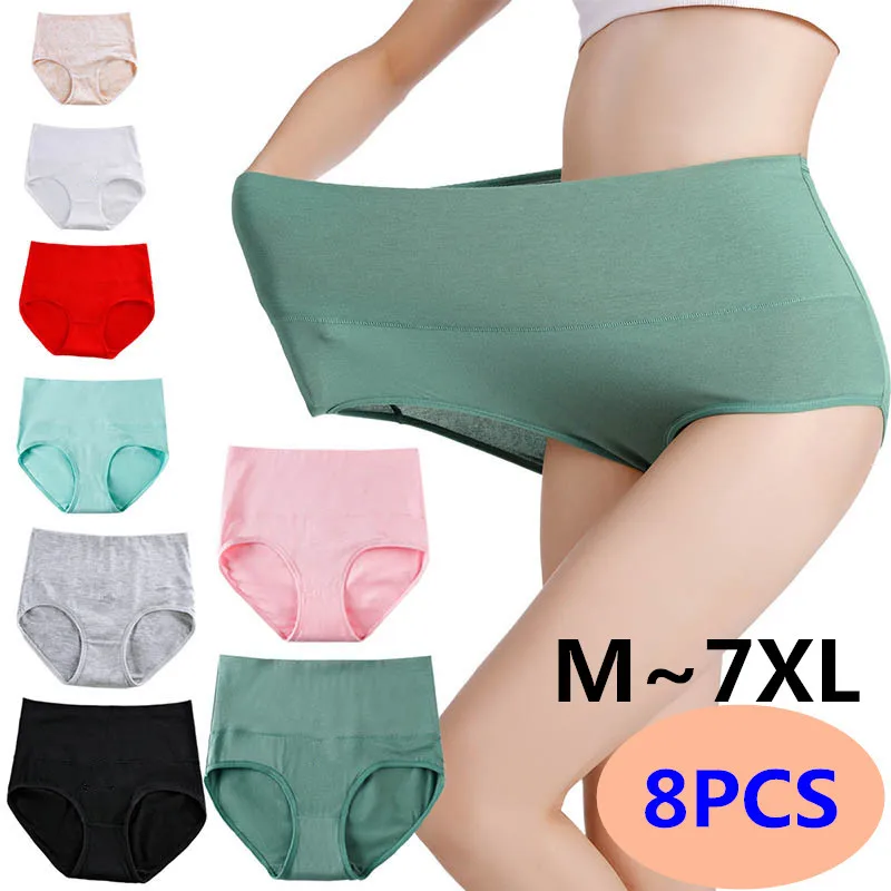8 шт.лот M 7XL больших размеров, женское нижнее белье, трусики с высокой талией живота хлопковое нижнее белье однотонные женские туфли из дышащего материала, нижнее белье