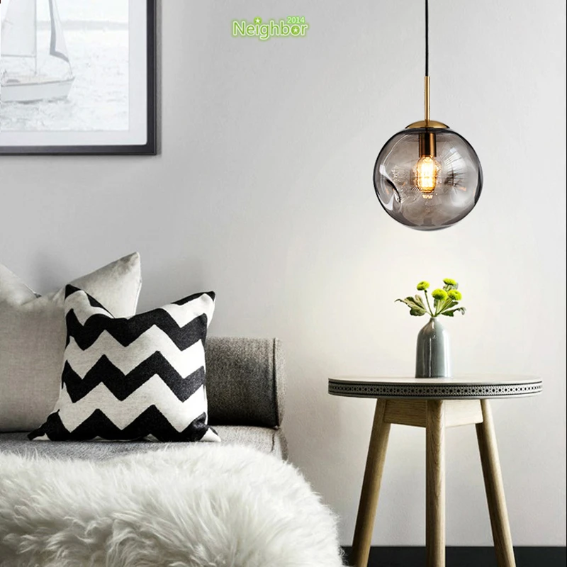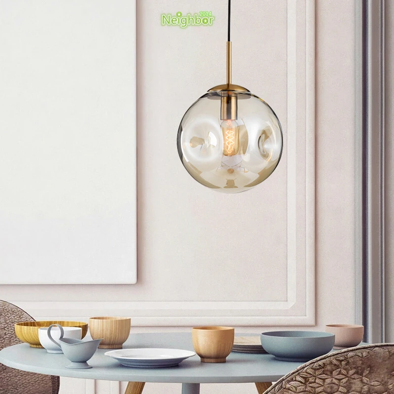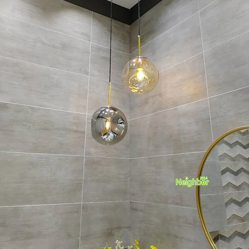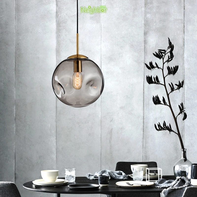 Современный подвесной светильник из дутого вогнутого стекла, освещение для отеля, ресторана, бара, кафе, хлебобулочного магазина, спальни, прикроватная лампа с янтарным дымом