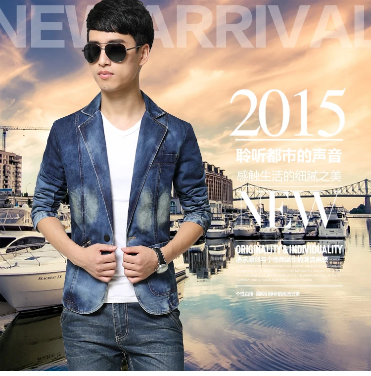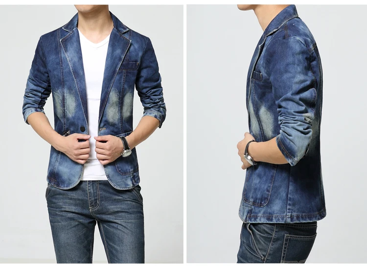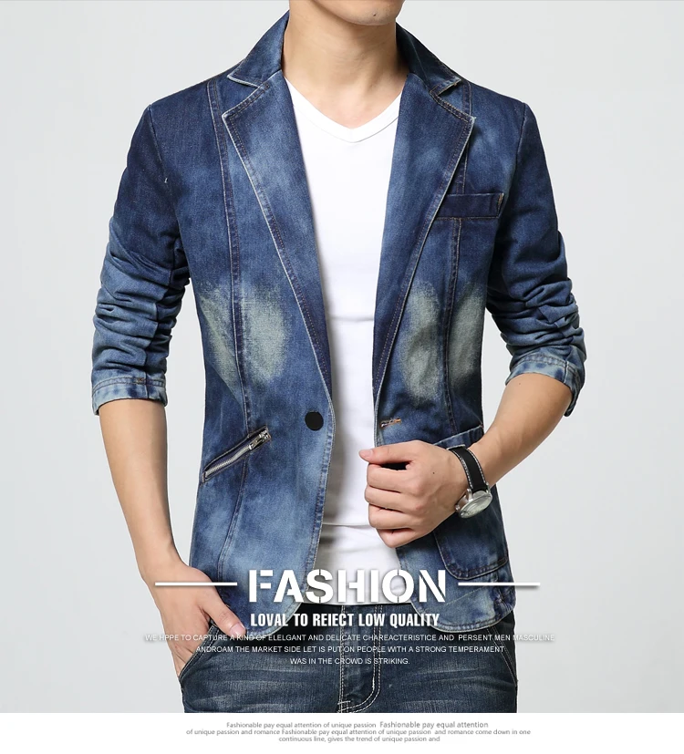 Мужской джинсовый пиджак, приталенный джинсовый пиджак на одной пуг...