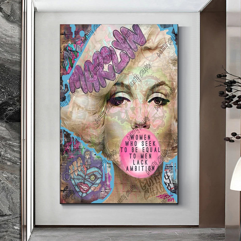 Абстрактное граффити, Мэрилин Монро, постер с воздушным шаром и печатная картина, Картина на холсте, настенное украшение для гостиной, Куадрос
