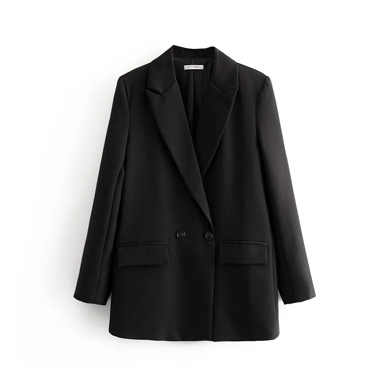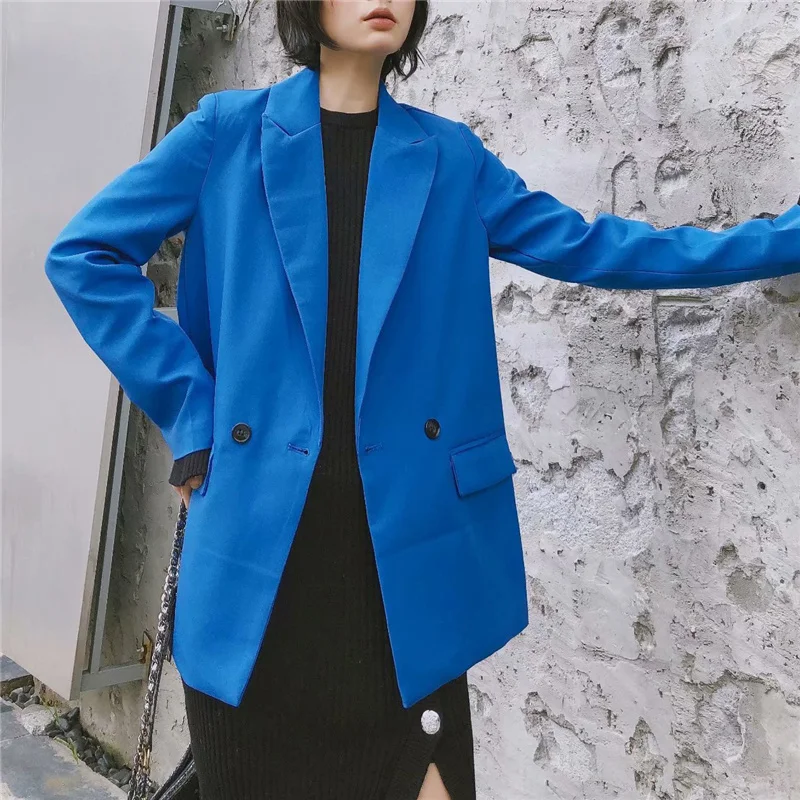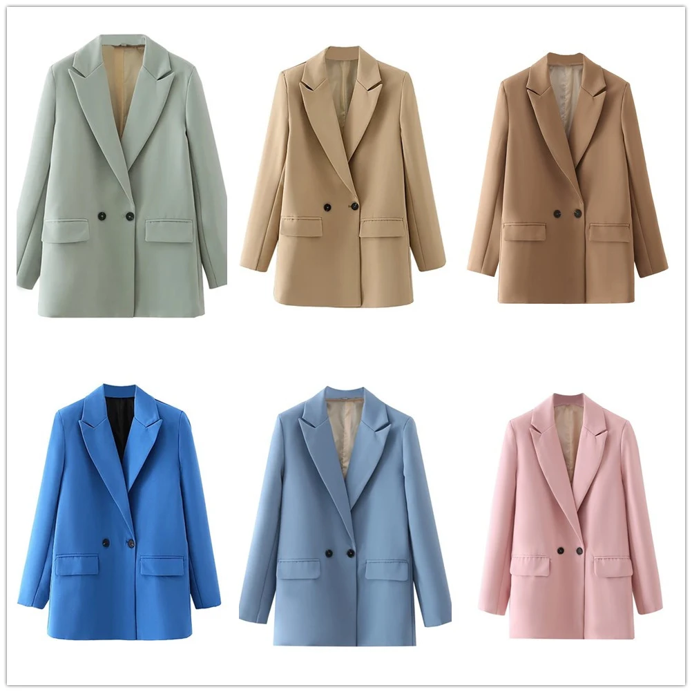 Однотонный Повседневный блейзер для офисной леди 2021, двубортный модный Женский блейзер с карманами, винтажный шикарный Женский блейзер
