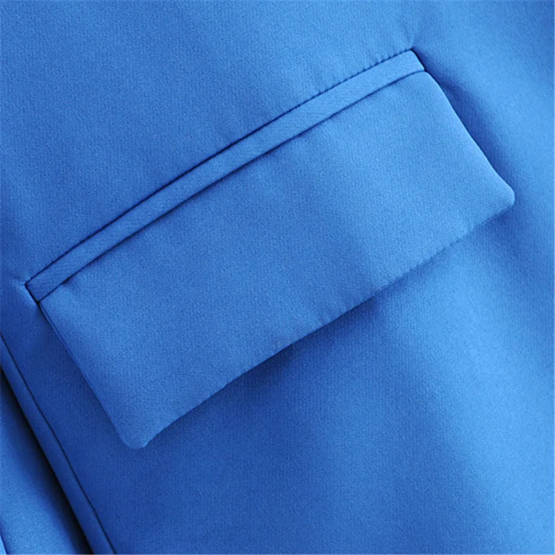 Женский блейзер с отложным воротником, элегантный однотонный синий ...