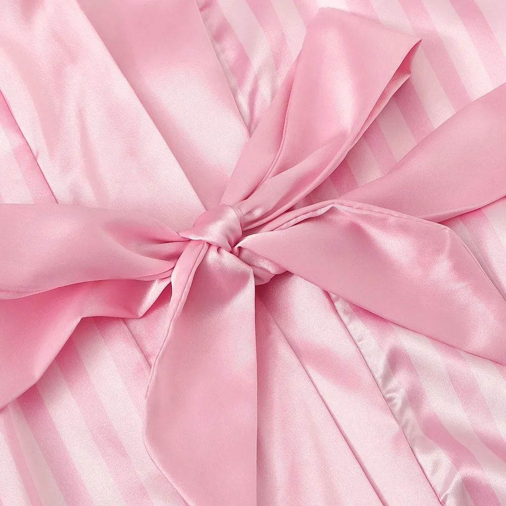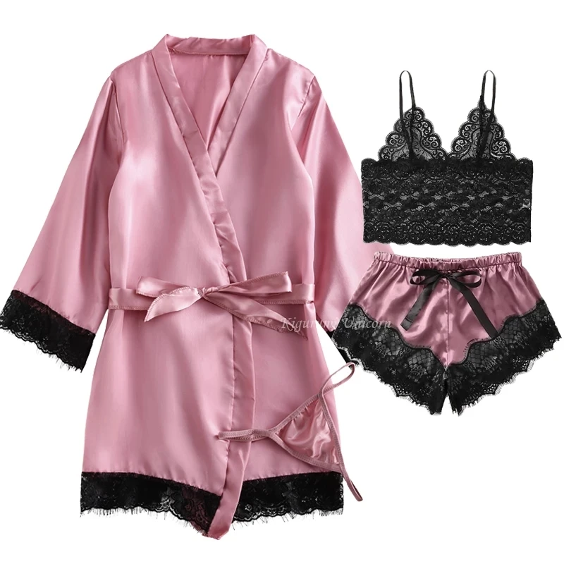 Розовый шелковый халат, костюм для сна, женский кружевной Атласный ...