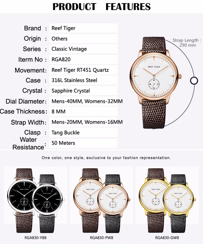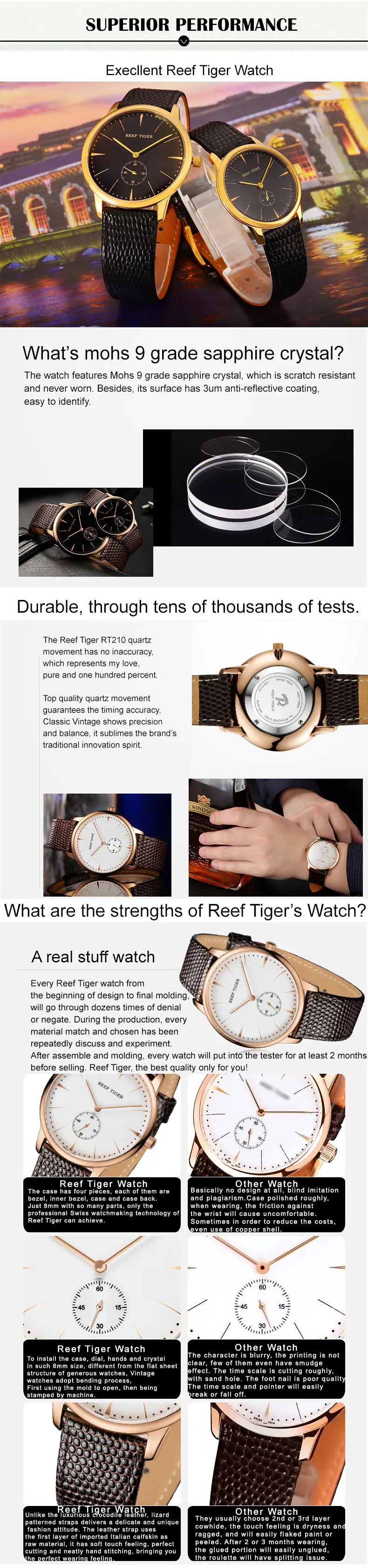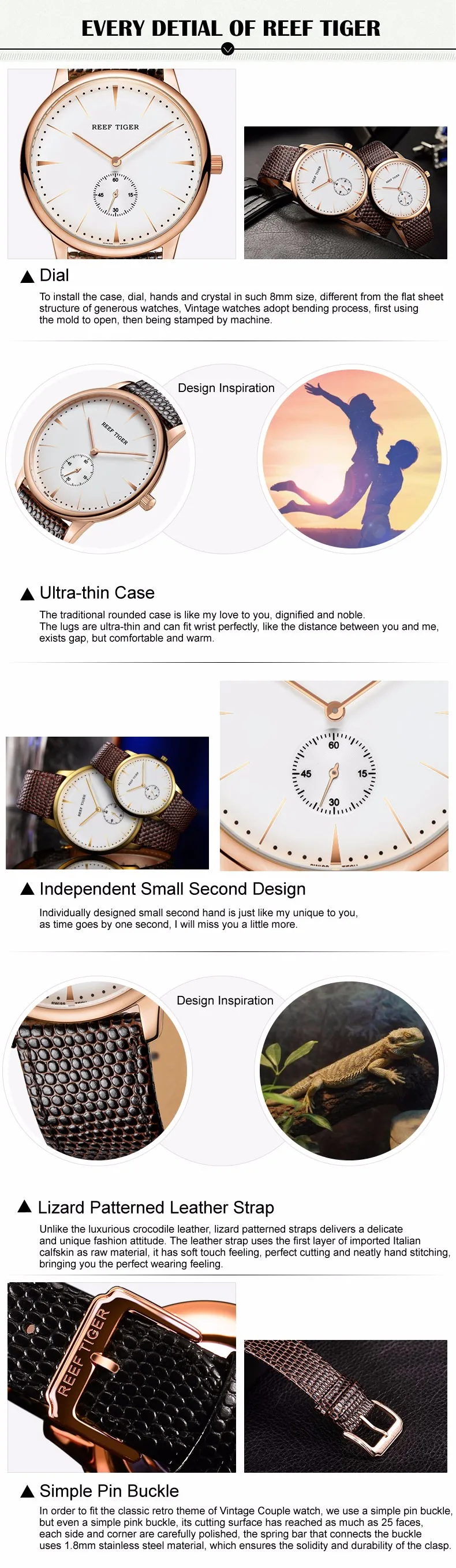 Reef TigerRT Роскошные винтажные часы, ультратонкие парные кварцевы...