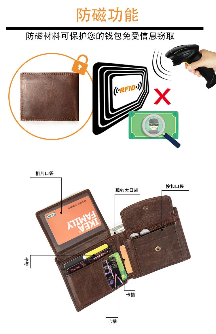 Мужской кошелек 2021, винтажный кошелек из натуральной кожи, кошелек с RFID-блокировкой, визитница, бумажник для денег, мужской кошелек