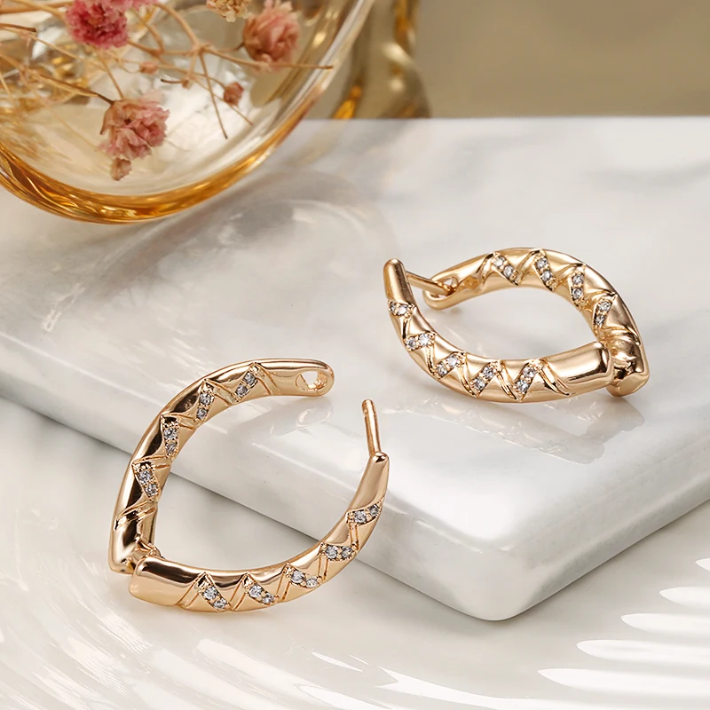 Серьги-подвески Kinel в минималистическом стиле женские, Изящные Ювелирные украшения из розового золота 585 пробы с геометрическими линиями и натуральным цирконием