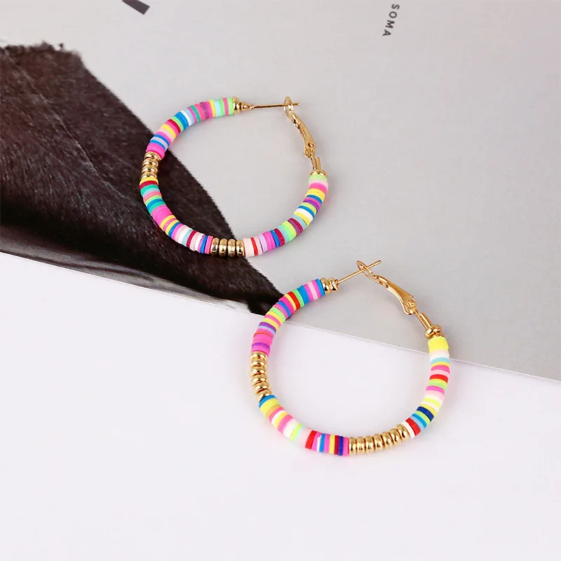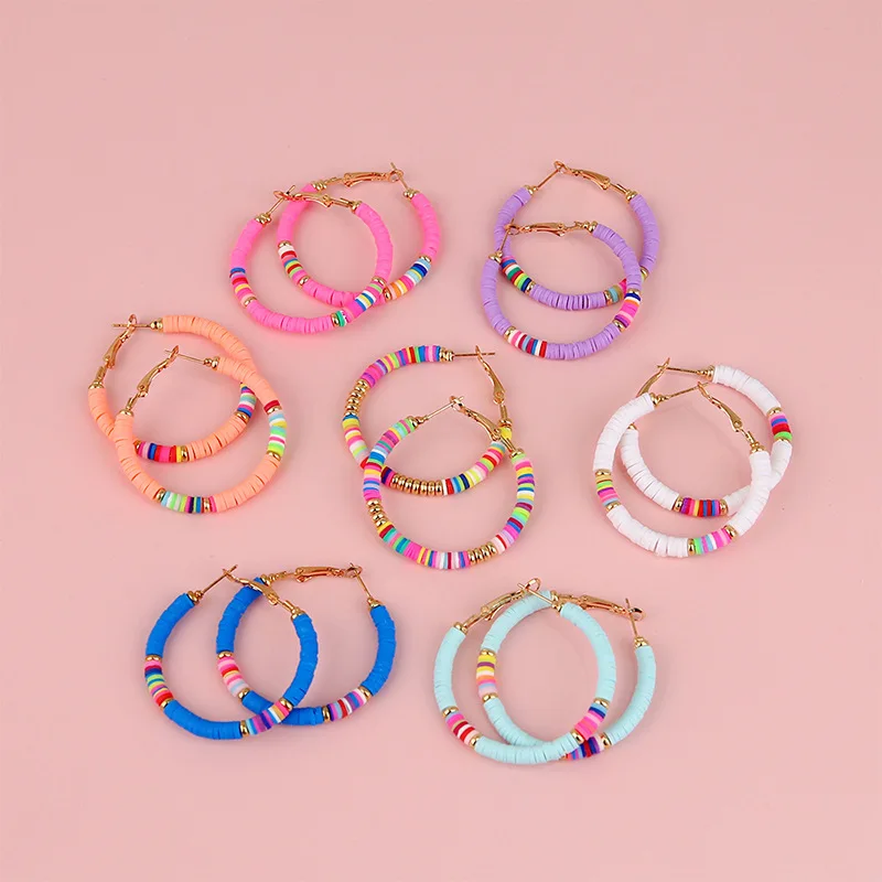 4 мм перерабатываемые серьги из полимерной глины Heishi, серьги в богемном стиле для серфинга, фиолетовые, белые, оранжевые, разноцветные, милые ушные петли, Женские Ювелирные изделия