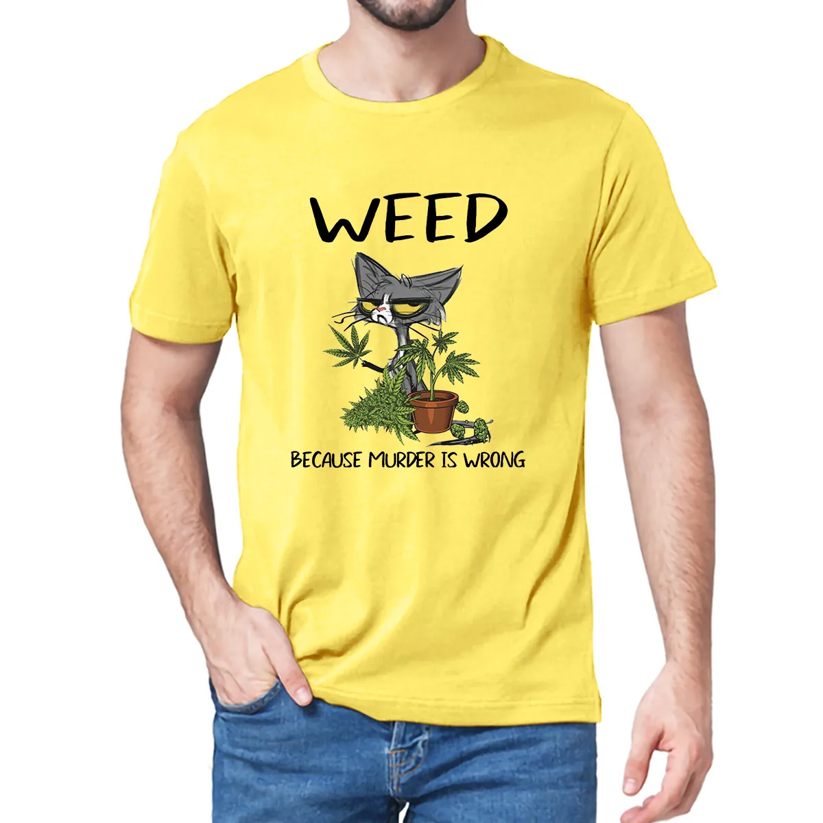 Футболка мягкая для мужчин и женщин, смешной топ с принтом черной кошки, марихуаны, из натурального хлопка, с принтом убийц, неправильный Кот, подарок для любимых, 100%