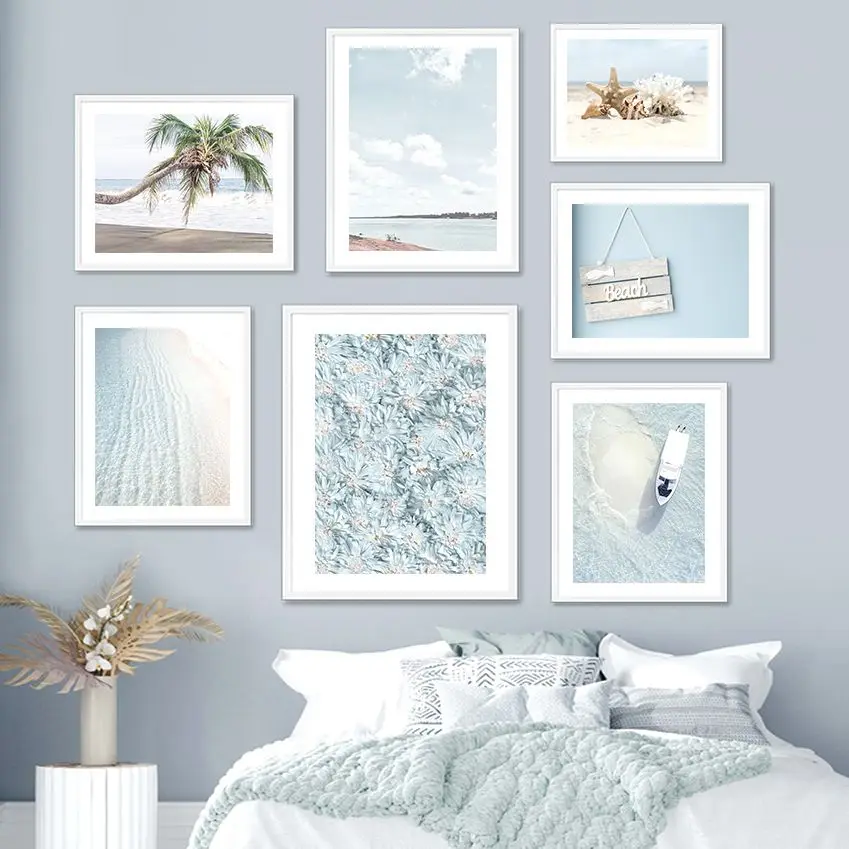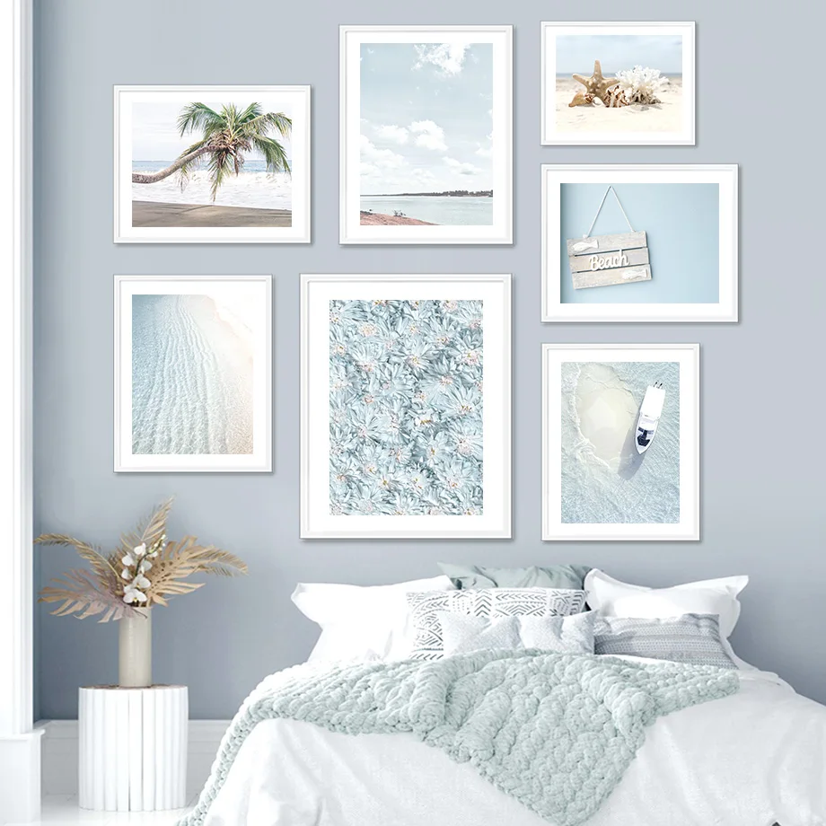 Морской пляж, цветок, пальма, морская звезда, настенная живопись на холсте, скандинавские плакаты и принты, настенные картины для гостиной, домашний декор