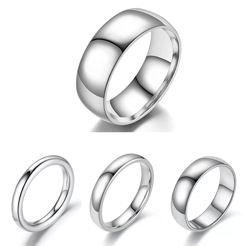 Мужские и женские обручальные кольца из нержавеющей стали, серебристые гладкие кольца 2, 3, 4, 6, 8 мм, Подарочная бижутерия VO01