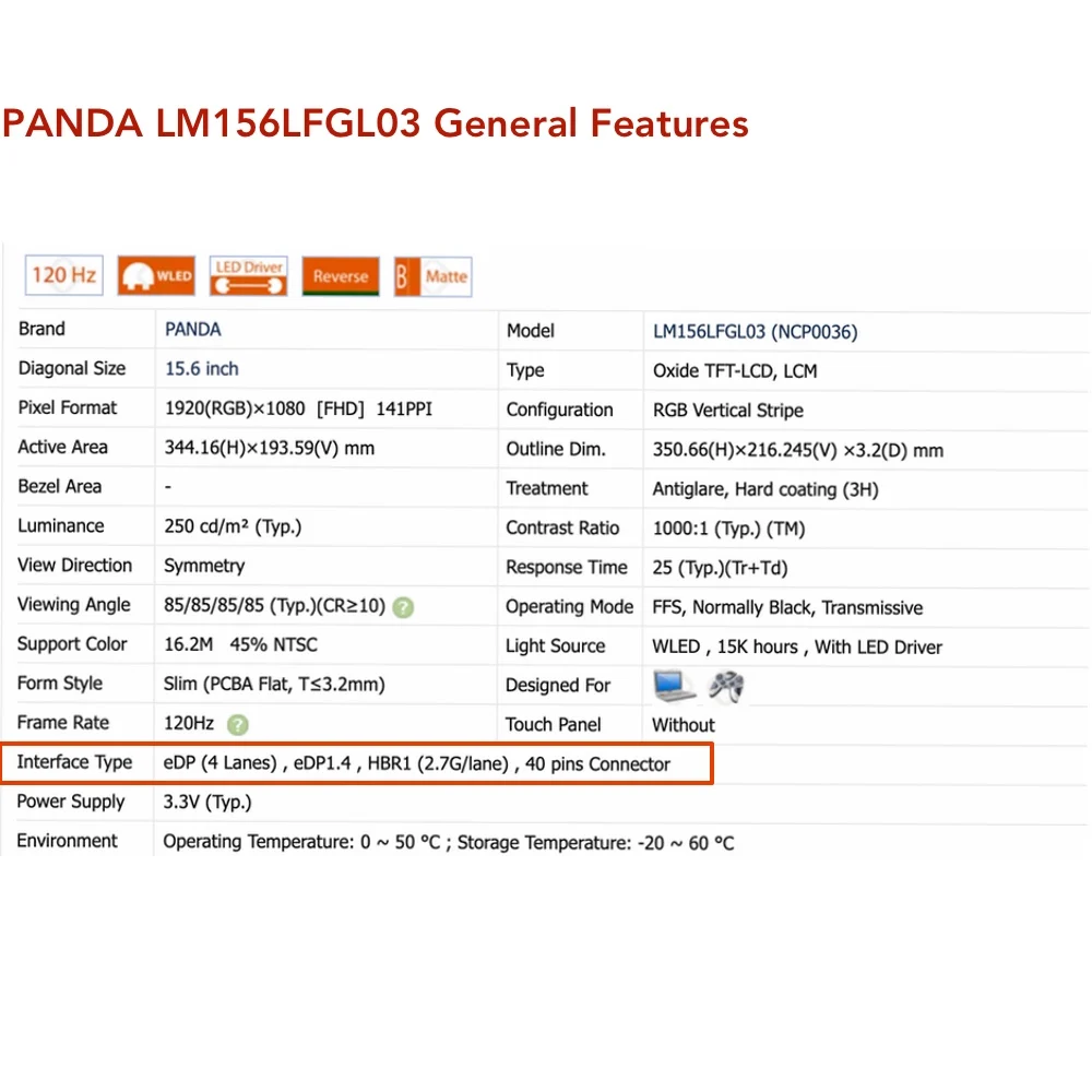 Compatible Models 04LM156LFGL02 01 N156HRA-GAA B156HAN13.0 LM156LFGL03 40 Pins