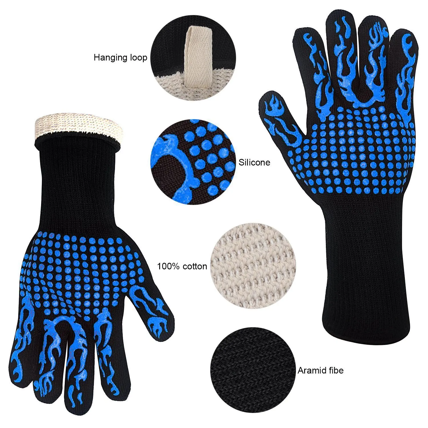 Перчатки для барбекю 1 пара, 500 градусов, устойчивые к высоким тем...
