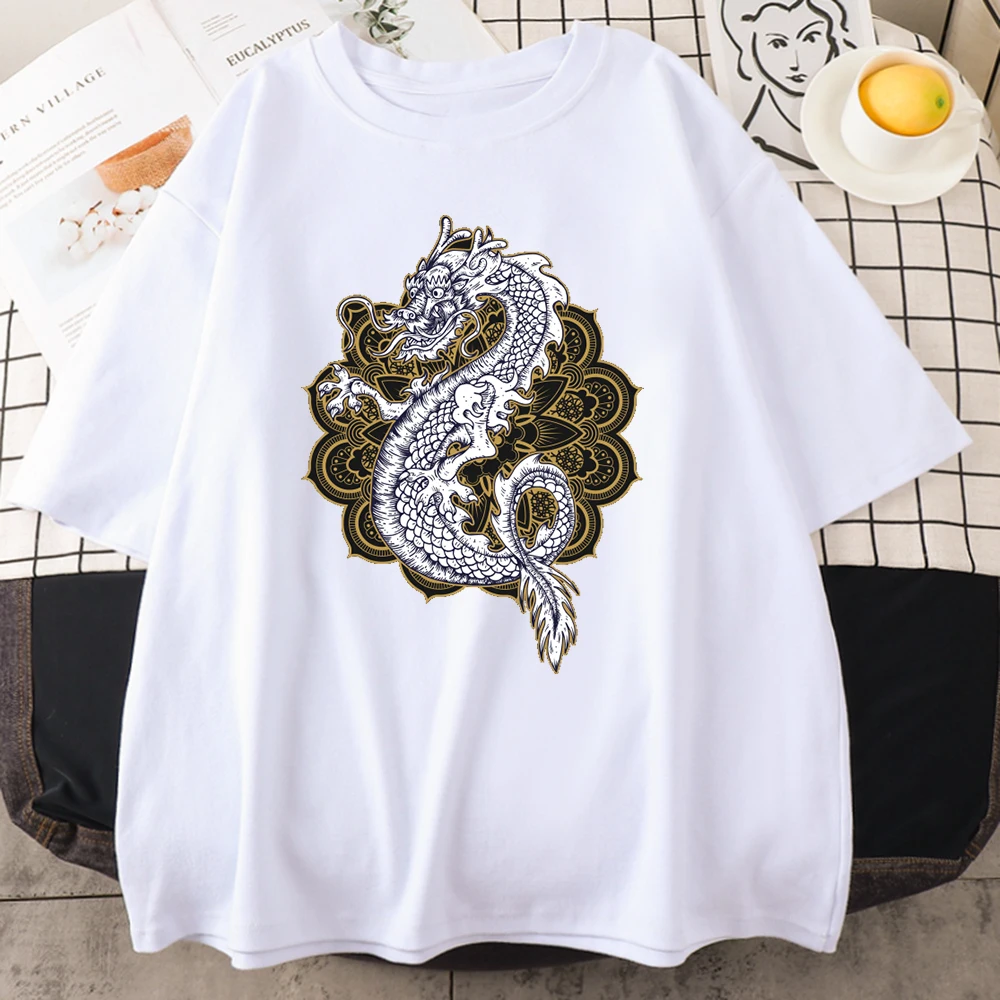 Женская футболка с принтом Lucky Cloud Dragon Totem, модная летняя брендовая Футболка Harajuku, свободная женская футболка