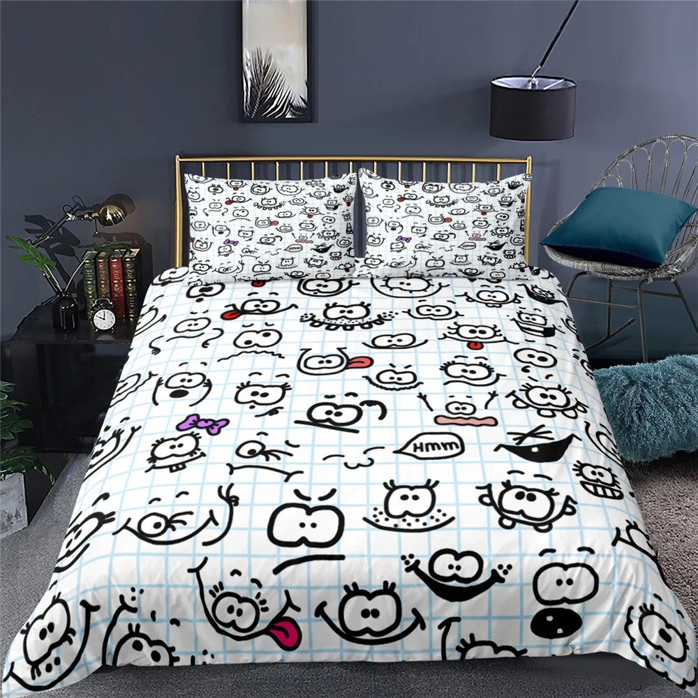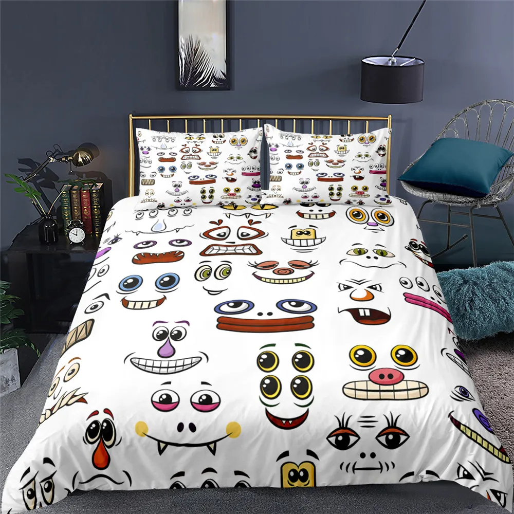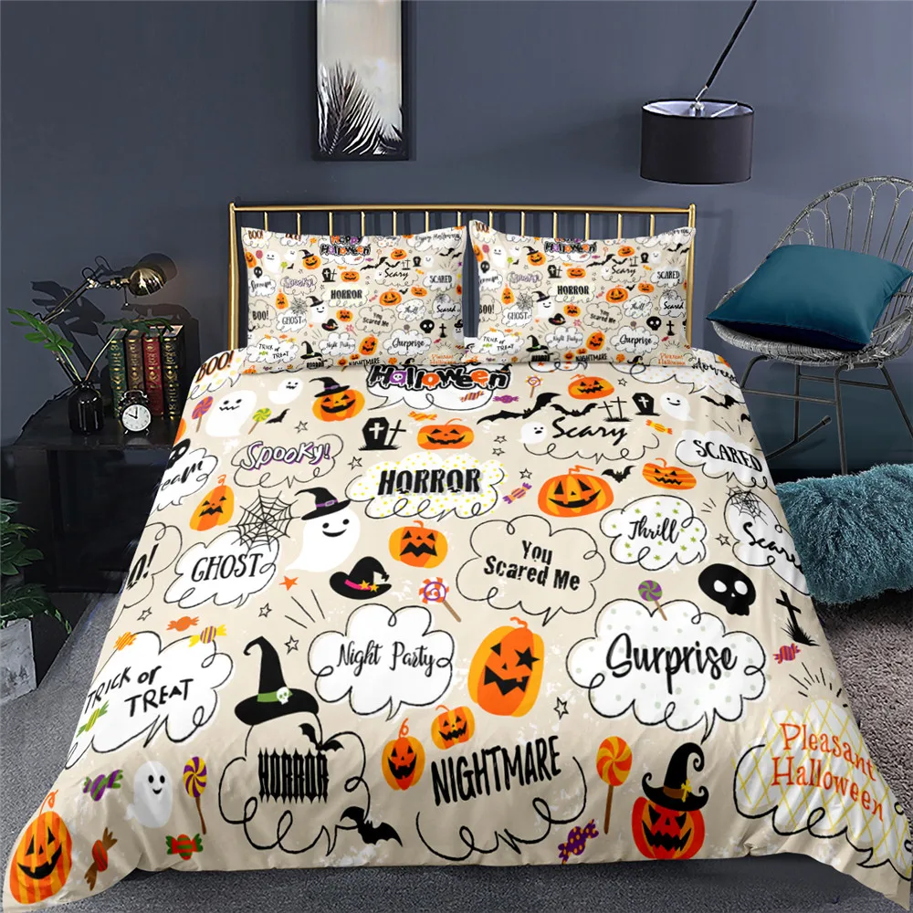 2021 мультяшный Комплект постельного белья Хэллоуин с забавным изображением лица пододеяльник комплект постельного белья наволочка двойной полный Королевский Большой размер Домашний текстиль