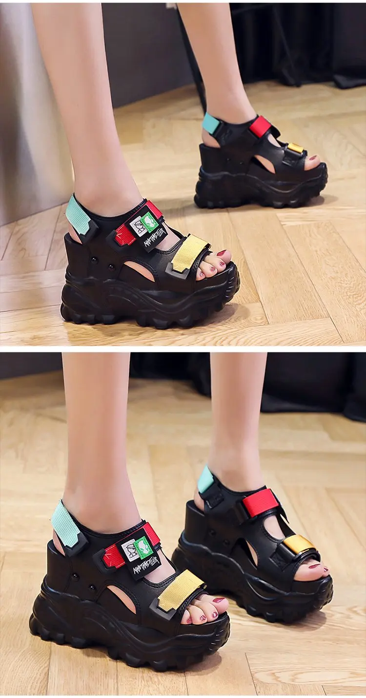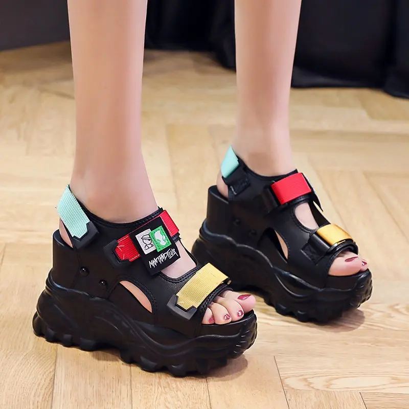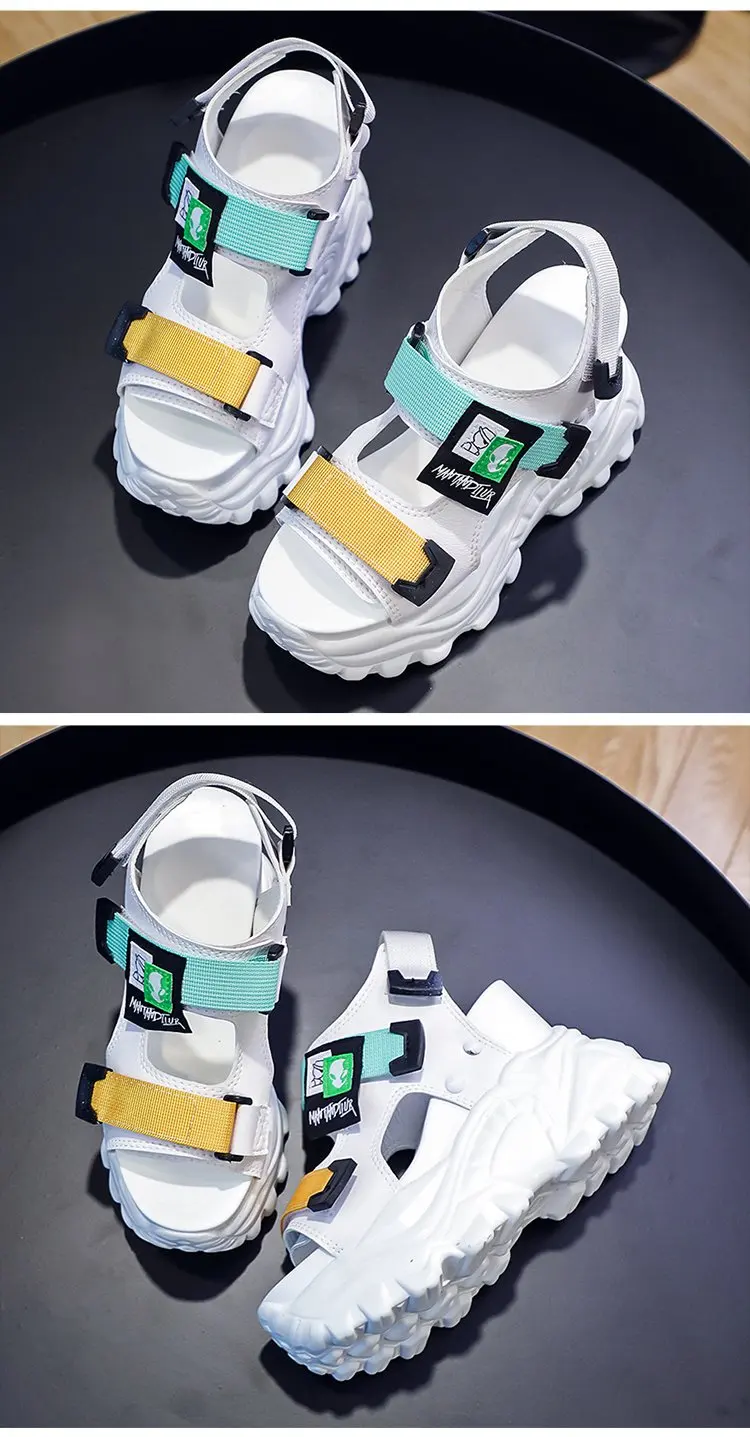 Сандалии женские на платформе, Босоножки с открытым носком, на высокой танкетке, спортивные пляжные, с пряжкой, 2021