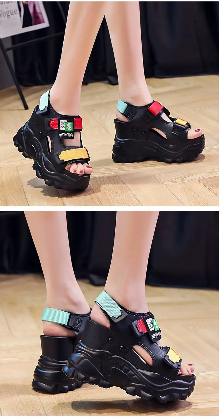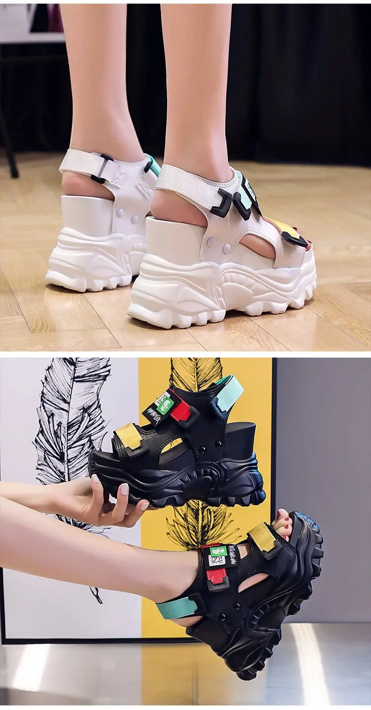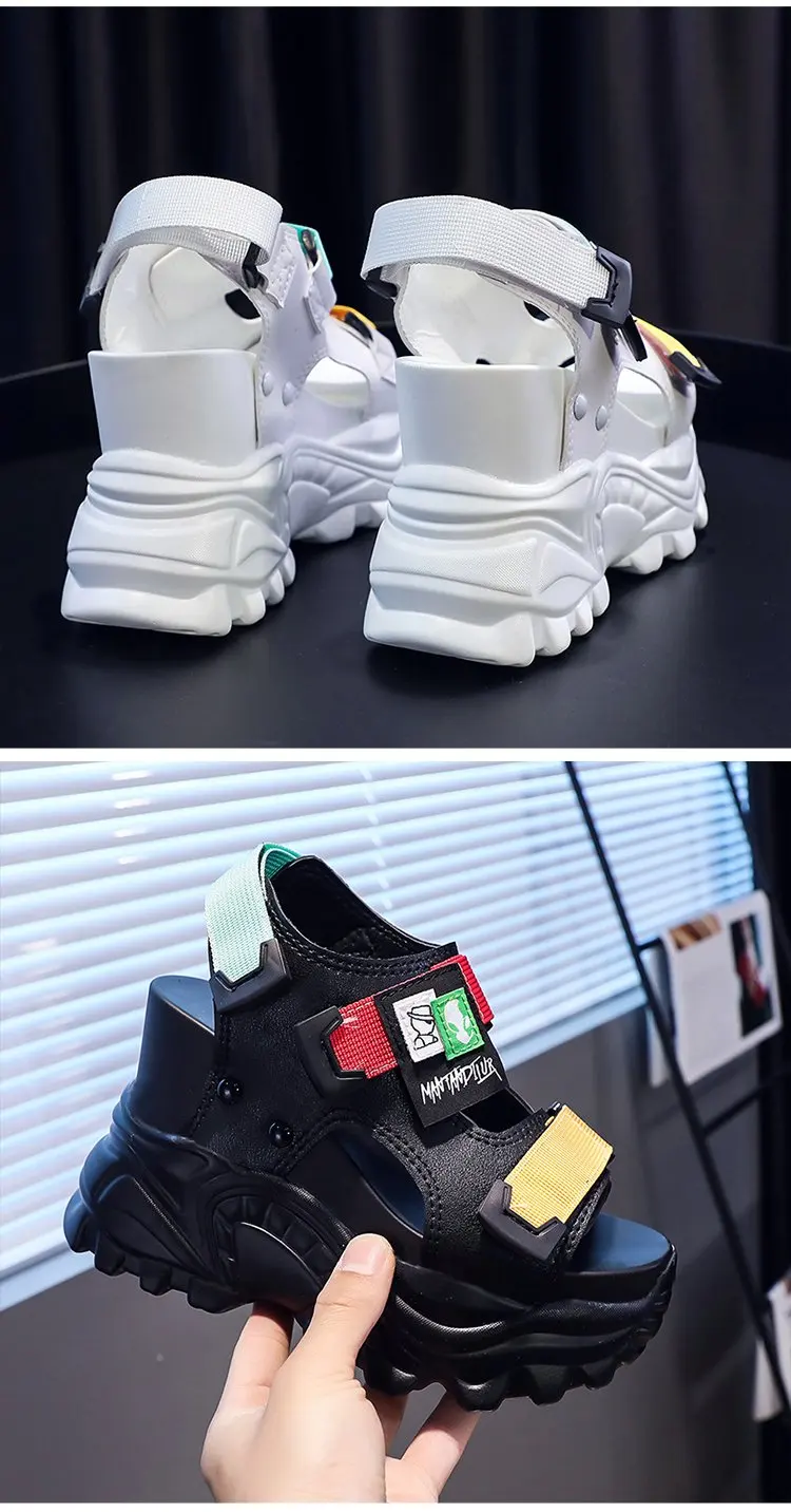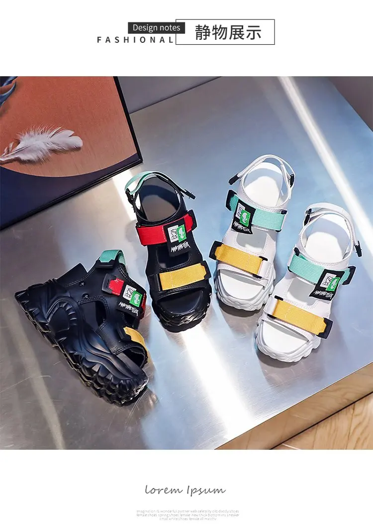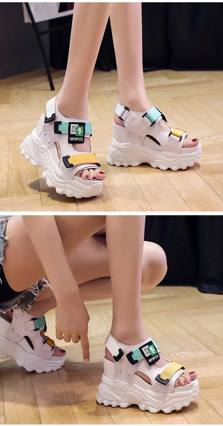 2021 Модные кеды на высокой платформе сандалии с пряжкой в стиле па...