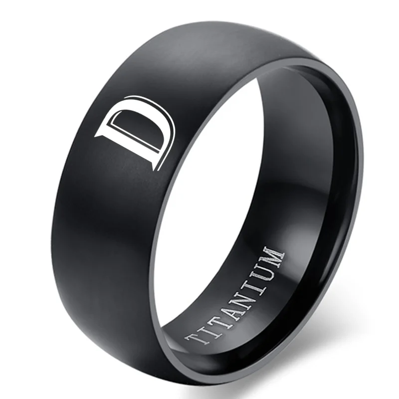 Мужское кольцо с гравировкой от A до Z, алфавит из нержавеющей стали, обычное кольцо, цвет черный, размер США