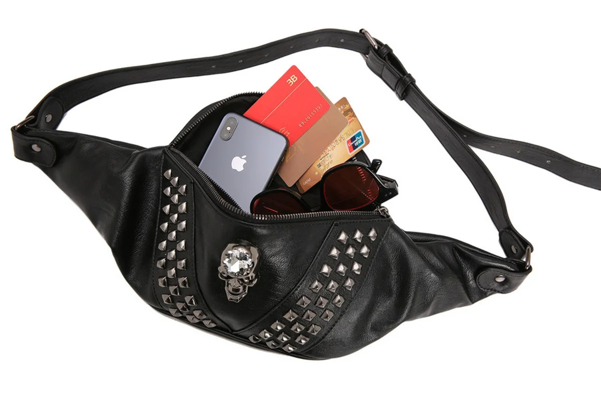 Поясная Сумка мужская, деловая, кожаная, повседневная, для путешествий, с черепом