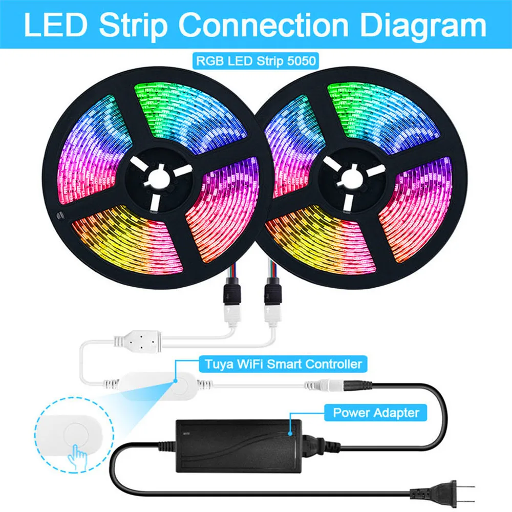 Спецификация:SMD 5050 Светодиодная лентаРазмеры: 5050: 500 см x 1 смЦвет излучения: RGB (включая белый)Степень защиты: IP20/IP65Рабочее напряжение: 12 В постоянного токаКоличество СВЕТОДИОДНЫЙ: 5 метров/рулонУгол обзора: 120 ° - 140 °Рабочая температура: от-20 до 50 ° Умный Wifi контроллер TuyaВходное напряжение: 5 в пост. Тока ~ 24 ВРазмер: 65x25x12 ммСеть: 2,4 ГГц Wi-FiЗагрузка приложения: Smart LifeПоддержка мобильных устройств: Android/IOSЦвет регулируется: RGBФункция: Голосовое управление, дистанционное управление с помощью приложения, регулировка яркости, Совместимость с Amazon Alexa Echo Google Home Assistant, IFTTT 【Голосовое управление через Alexa и Google assistant】светодиодные полосы освобождает ваши руки и не нужно двигаться. Используйте простые пусковые устройства для включения и выключения ламп и установите цвета, чтобы сделать их ярче или затемненным. В настоящее время совместим с Echo и Google Home.【Управление по Wi-Fi через приложение "Smart Life" может контролировать светодиодный светильник s для достижения эффекта, которого может достичь весь светильник (включение/выключение/изменение цвета и яркости). С помощью мобильного приложения вы можете выбрать все цвета. Посылка включает в себя: 5 м набор светодиодных лент:Светодиодная лента 5 М 5050-1 шт.1 умный контроллер Tuya Wifi1 x 3A адаптер питания для ЕС/США