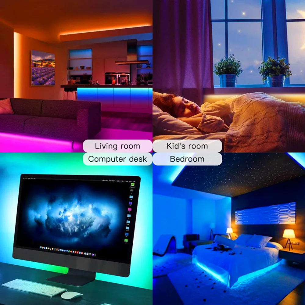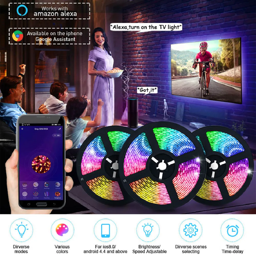 Светильник ные ленты с Bluetooth и Wi-Fi контроллером, гибкая декоративная подсветильник ка RGB 5050, ночник, светящаяся лента для спальни