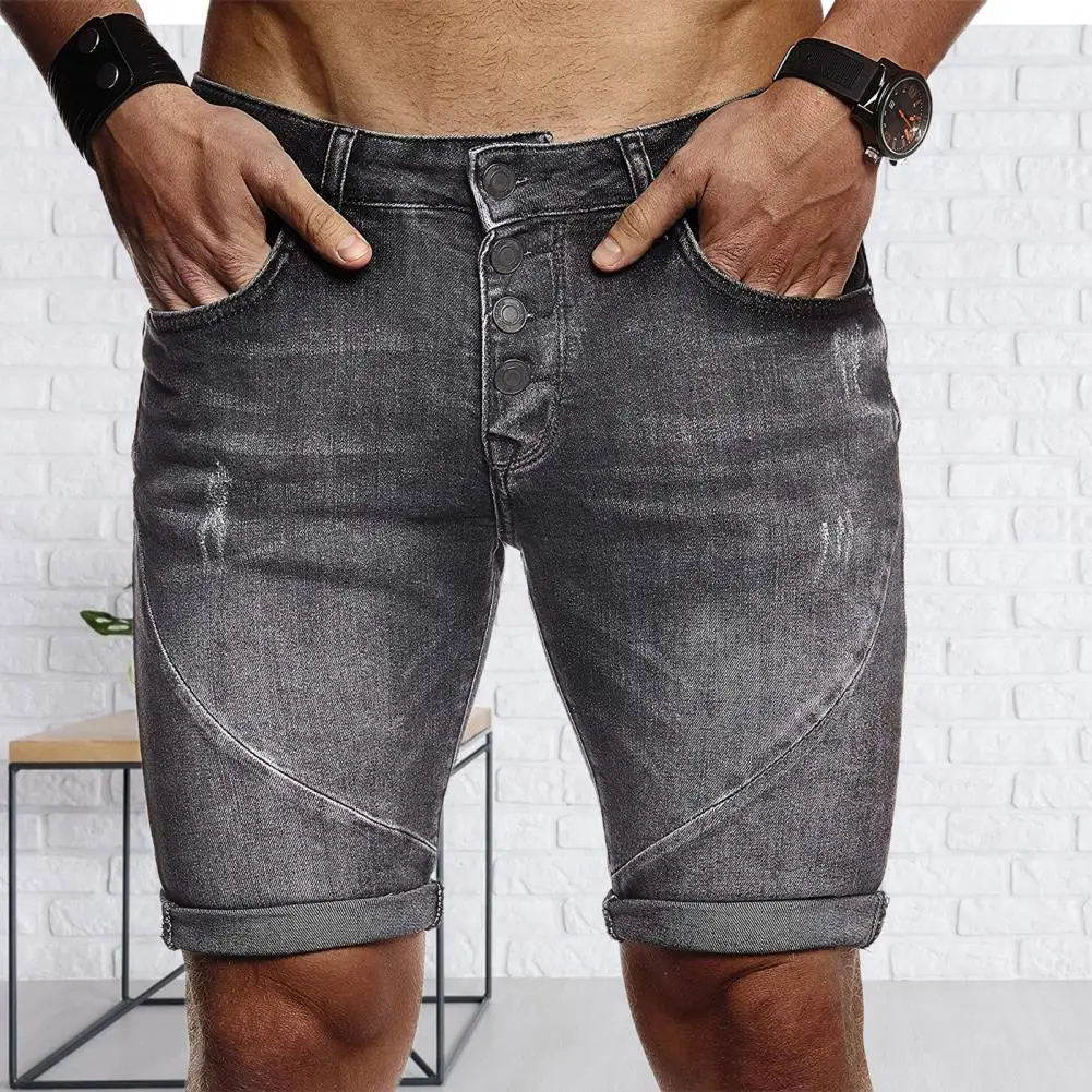Джинсовые шорты мужские, Стрейчевые прямые, рваные, из полиэстера, удобные для повседневной носки, лето
