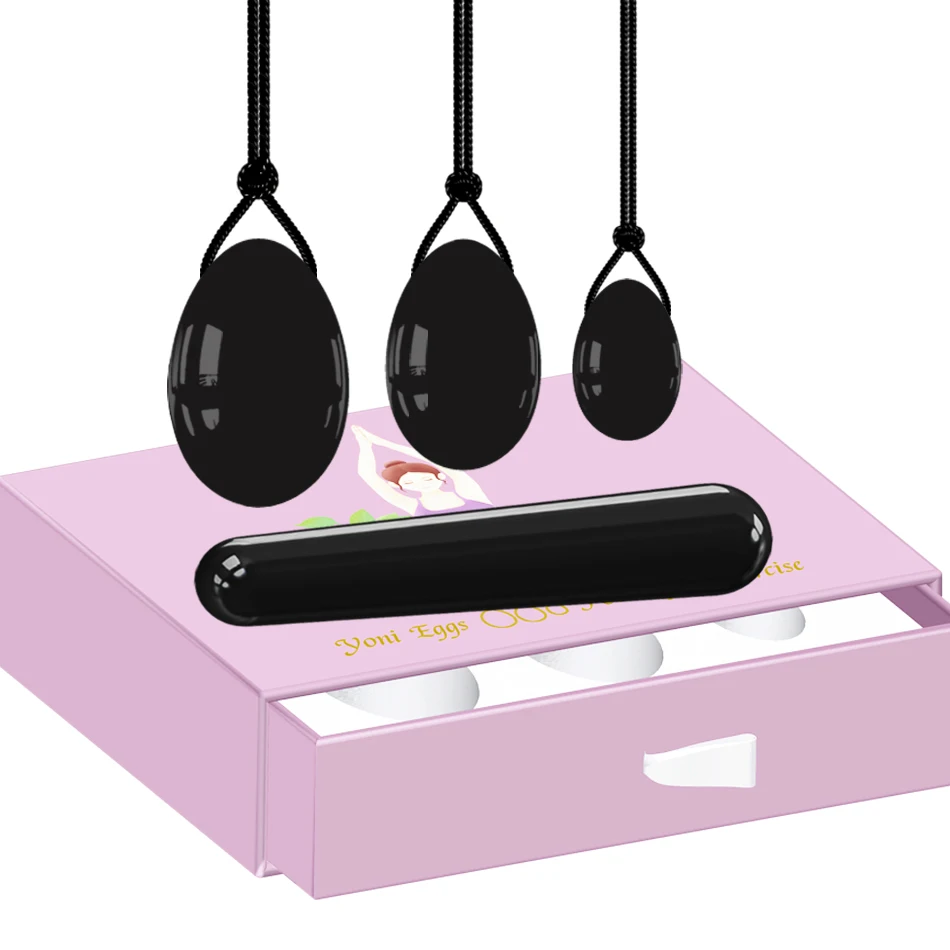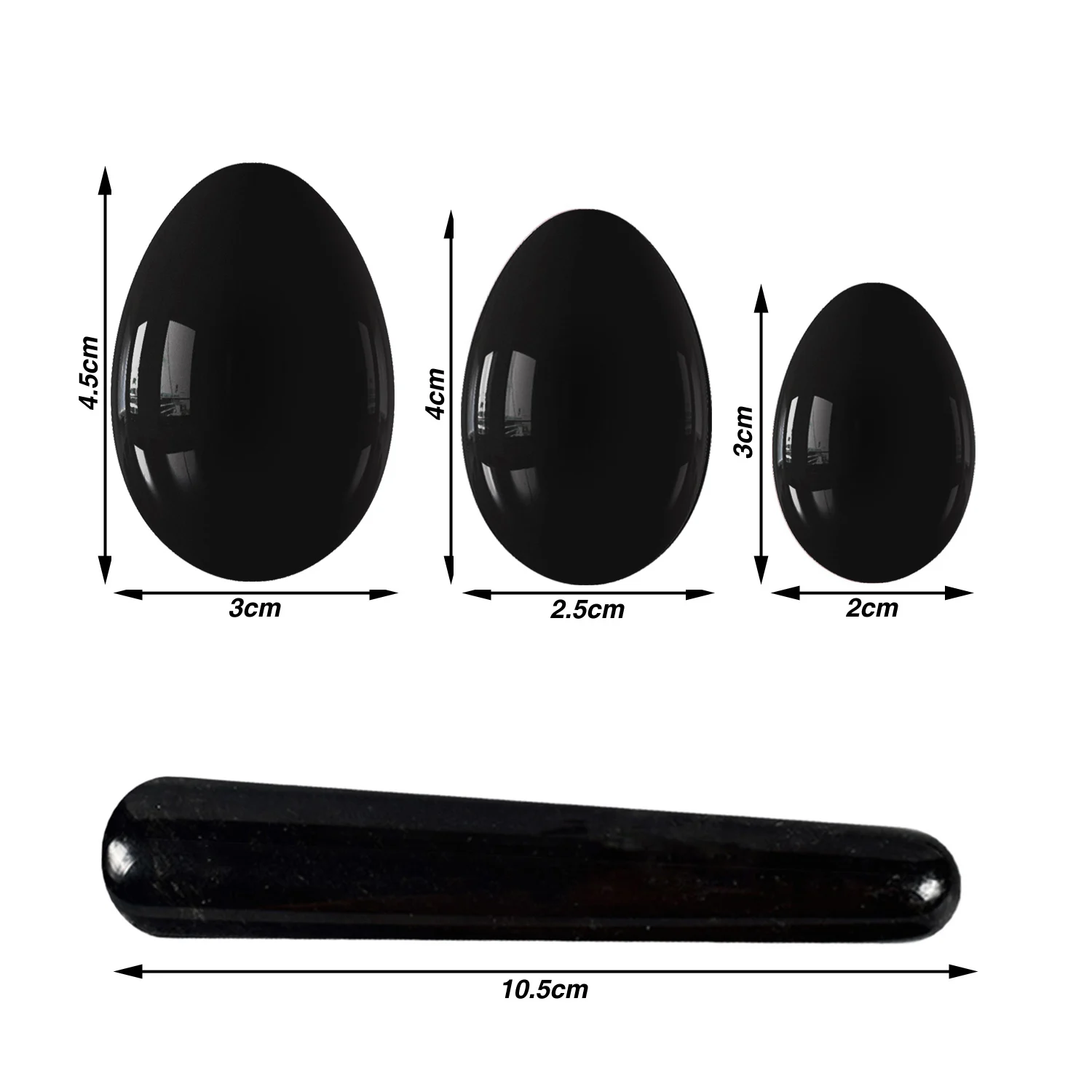 Набор из яиц и палочек Obsidian Yoni из натурального камня, с отверстиями и без отверстий, Черные Хрустальные Яйца для упражнений Кегеля, набор массажных палочек
