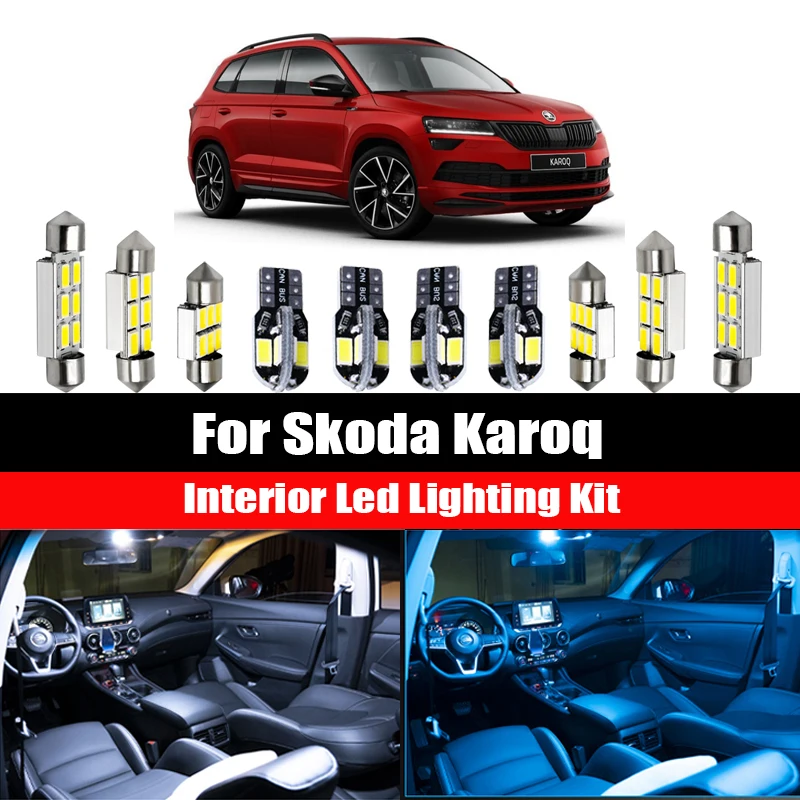 10 шт. автомобильные аксессуары Canbus светодиодные лампы для интерьера для Skoda Karoq 2017-2020 купол автомобиля карта чтения багажник светильник комплект авто лампы