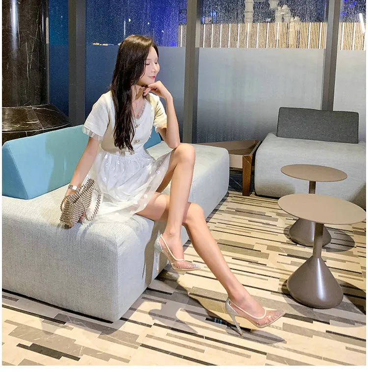 2021 летние прозрачные сандалии для женщин с острым носком Сказочны...