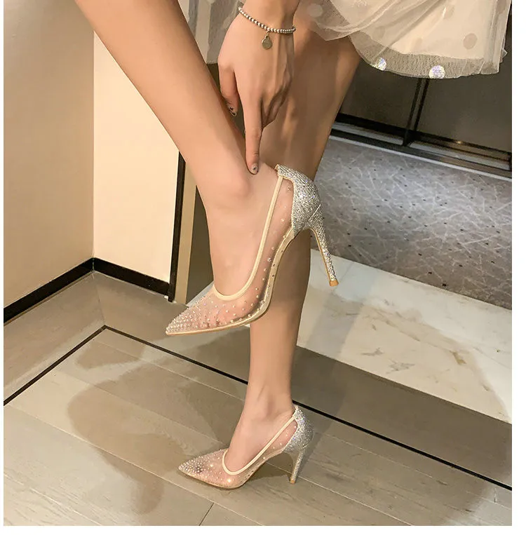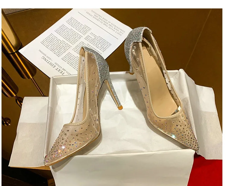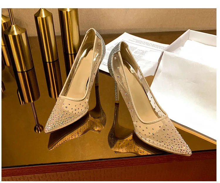 2022 женские туфли на высоком каблуке с острым носком, сетчатые туф...