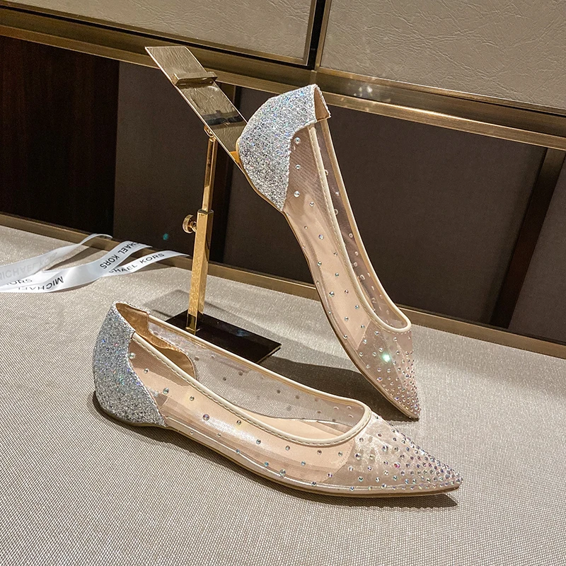 2021 роскошная женская обувь, стразы с гипсофилой, балетки с острым носком, сетчатые туфли на плоской подошве, женская обувь