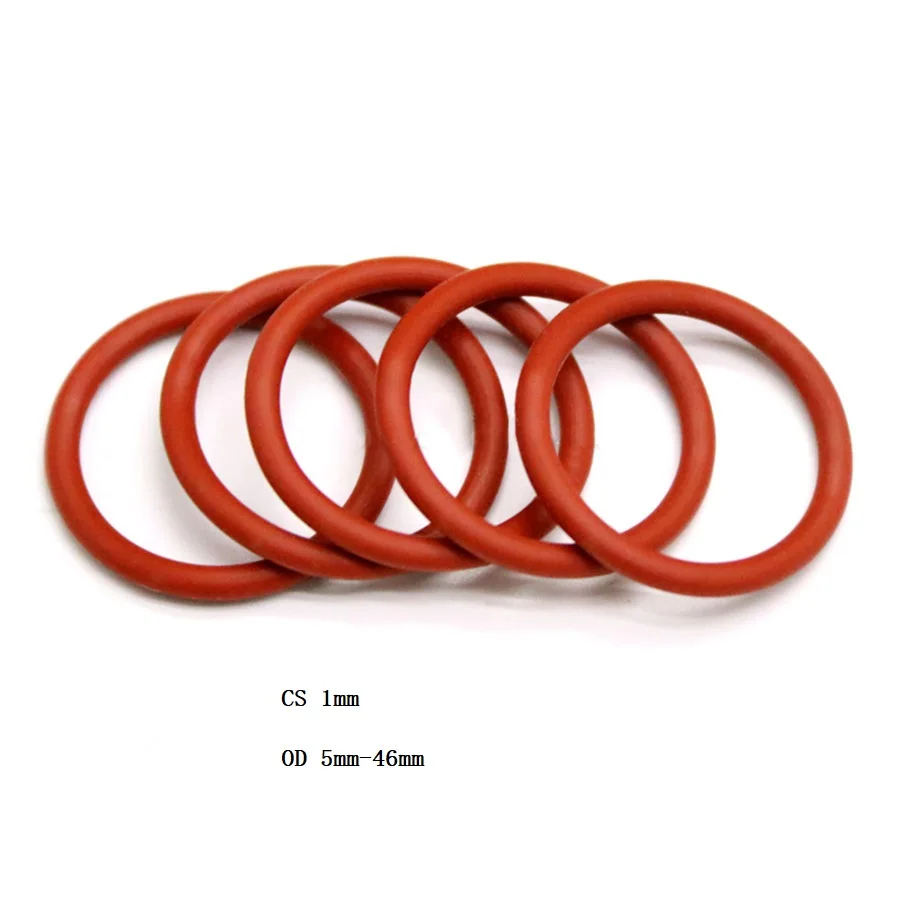 Силиконовое уплотнительное кольцо 1 мм, резиновая шайба пищевого класса, красное уплотнительное кольцо OD 5 мм-46 мм CS 1 мм