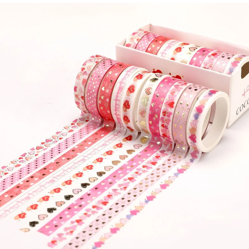 10 шт.партия лента из золотой фольги, декоративная клейкая лента в форме сердца для скрапбукинга, альбома, DIY Канцтовары