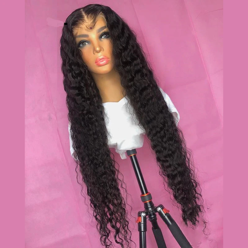 Синтетические волосы на кружеве синтетические парики из натуральных волос глубокая волна парик для Для женщин вьющиеся человеческие волосы парики предварительно вырезанные фронтальной парик с детскими волосами бесклеевой