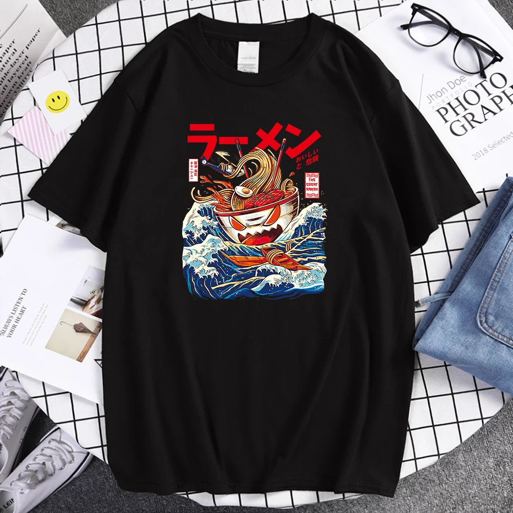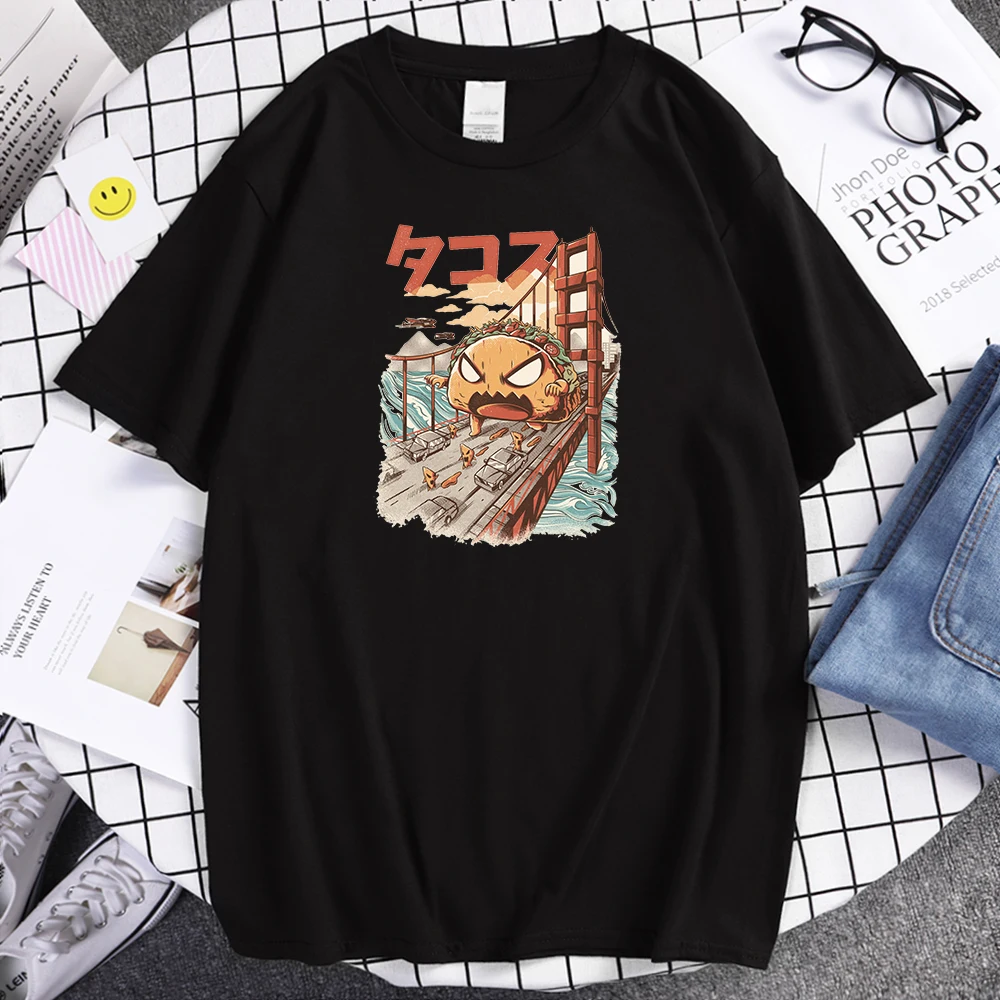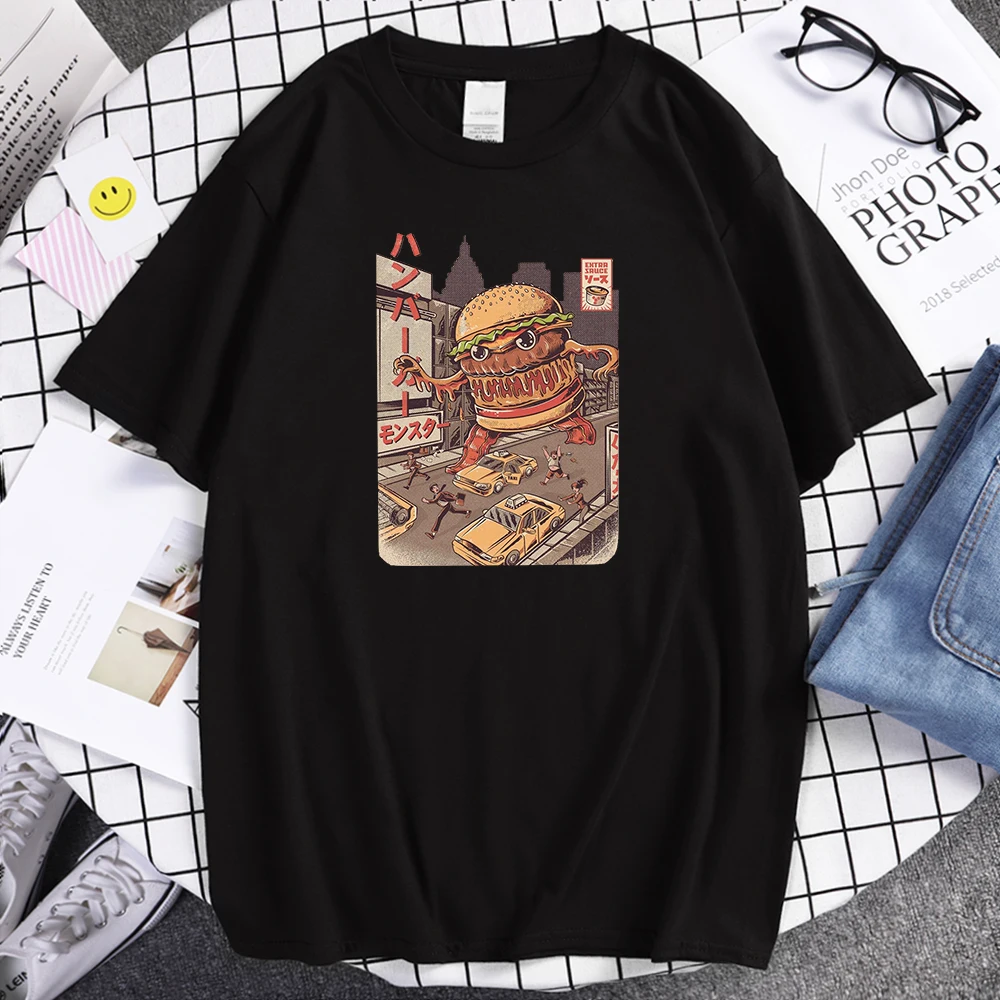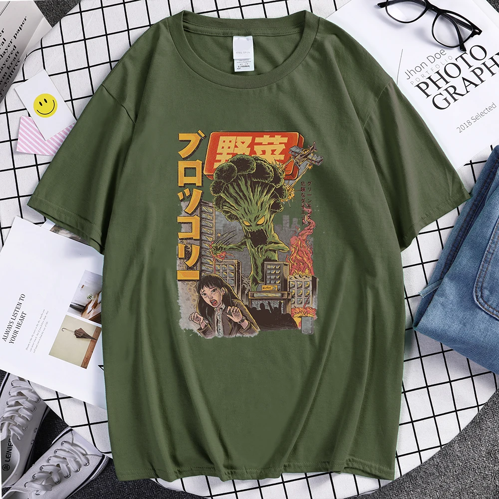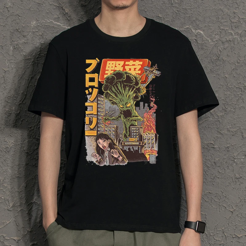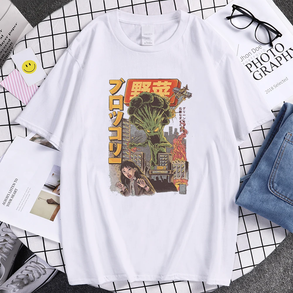 Brocolin Monster Attack Humman, футболка в японском стиле с принтом, брендовые корейские футболки, большой Свободный Топ, мужские футболки с круглым вырезом