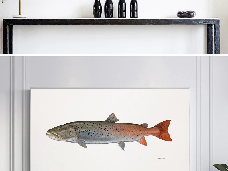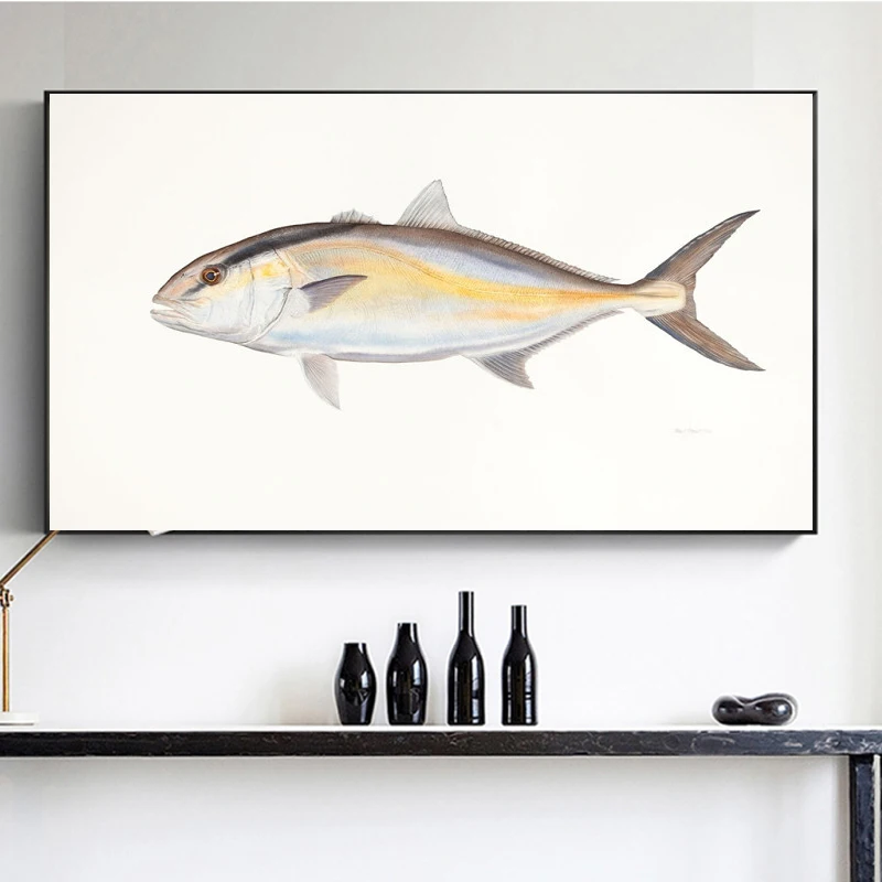 Винтажная ручная роспись, постер, французская версия, рыба, настенное искусство, холст, принт с рыбами, домашнее украшение, живопись для гостиной 5-97
