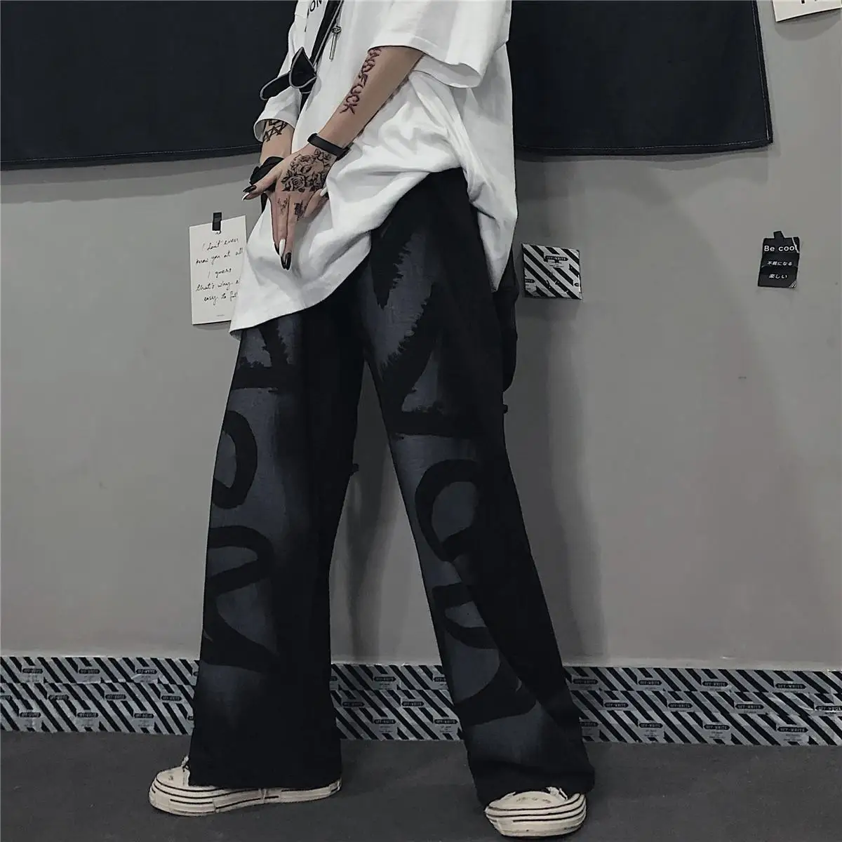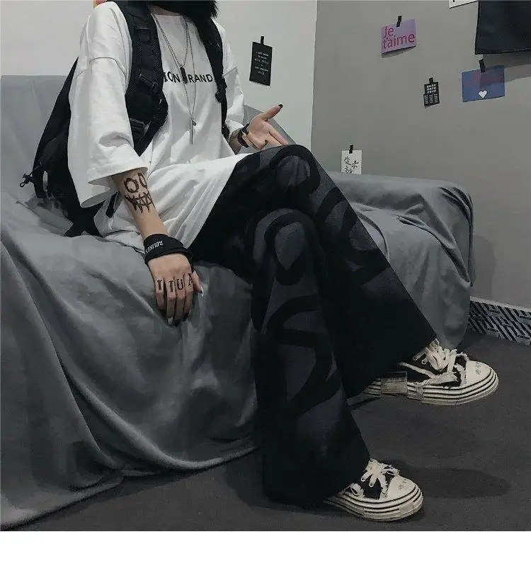Брюки с широкими штанинами, индивидуальные Прямые повседневные штаны с буквенным принтом, красивые парные брюки