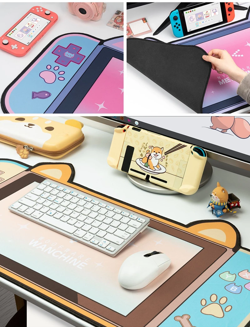 Игровой коврик для мыши, большой коврик для мыши с мультяшными кошачьими ушками, толстый и для долговечной игры нескользящий коврик, модель NS, настольный декоративный коврик