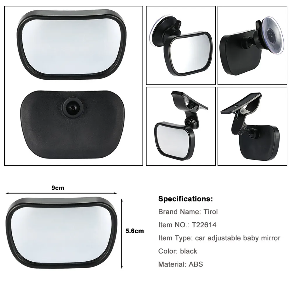 Особенности:1. Установите на ветровое стекло или солнцезащитный козырек и прямо через зеркало, чтобы увидеть вашего ребенка.2. Разработан, чтобы помочь вам увидеть вашего ребенка, когда он находится в автомобильном сиденье, обращенном против него, без поворачивания головы во время вождения.3. Легко устанавливается на солнцезащитный козырек или ветровое стекло, затем вращается и поворачивается для четкого обзора.Характеристики:1. Название бренда: Tirol2. Номер товара : T226143. Тип товара: автомобильное регулируемое детское зеркало4. Цвет: черный5. Материал: АБС-пластик6. Размер зеркала: 9*5,6*1,5 см7 посылка: 11,5*8*5 см/4,5*3,2*2 дюйма8 посылка: 90 г/3 унцииПосылка тация:1 * зеркало1 * солнцезащитный козырек