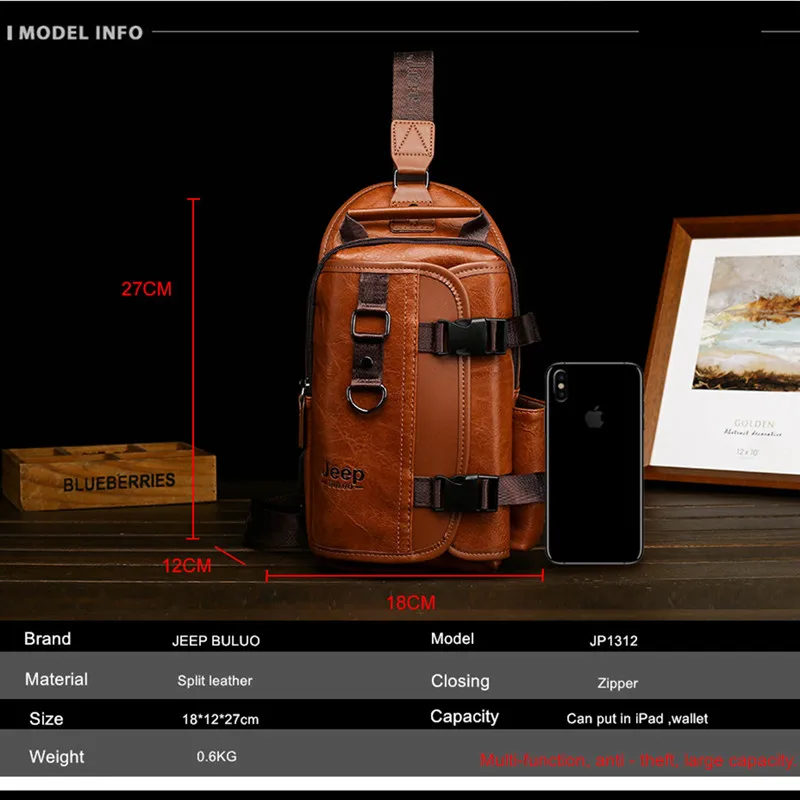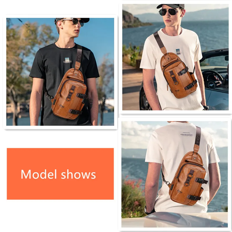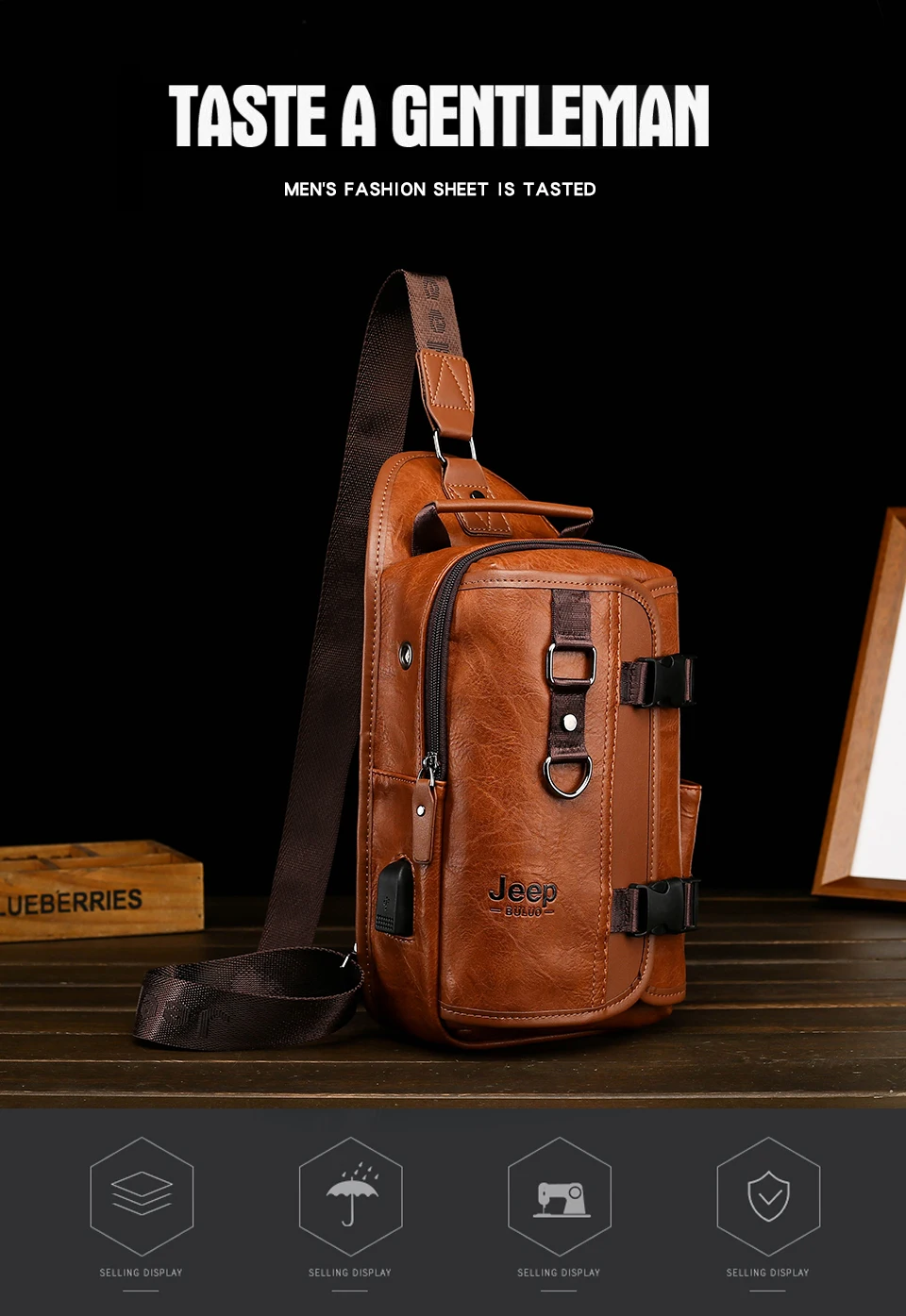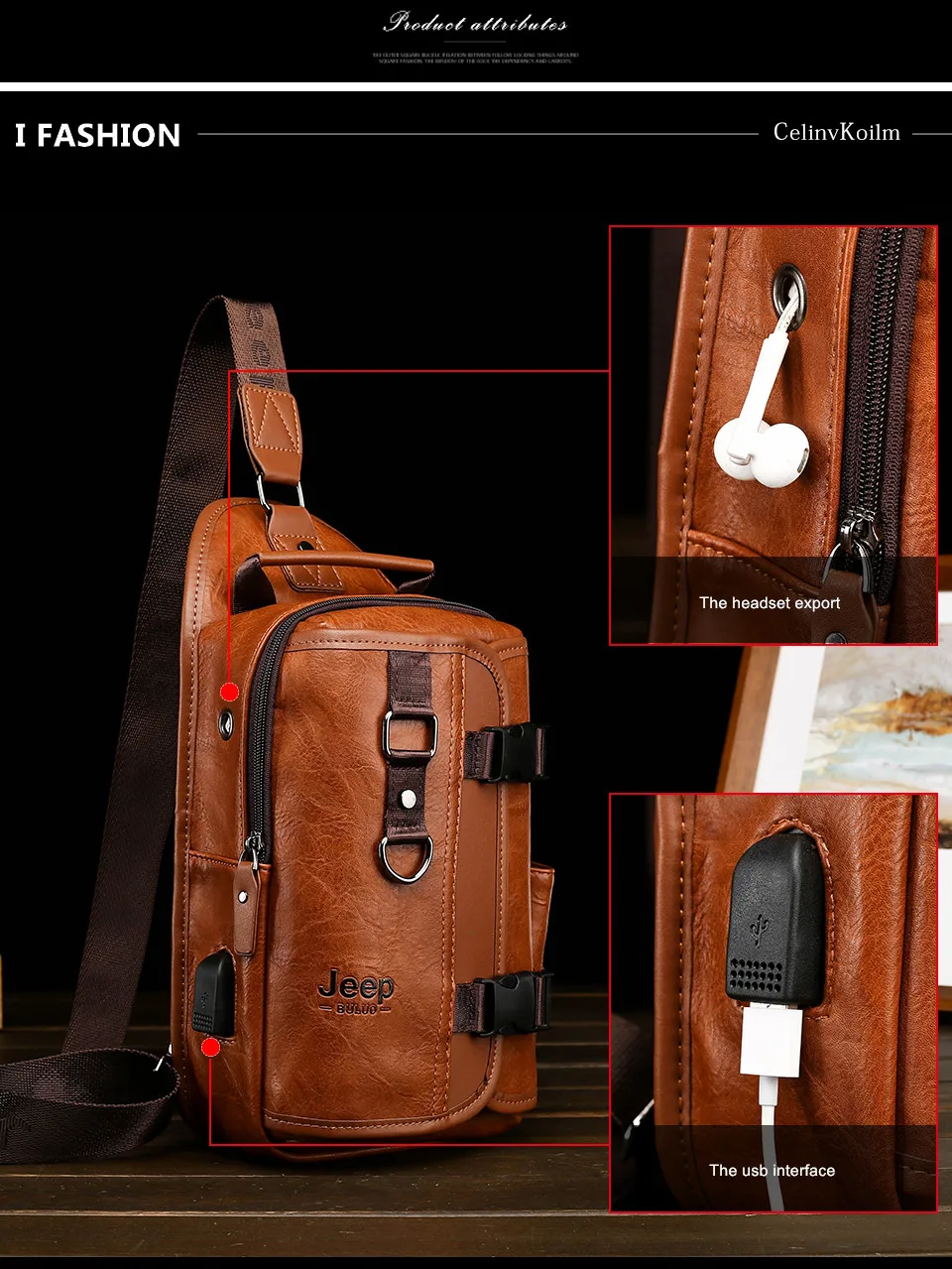 Мужская нагрудная сумка JEEP BULUO, оранжевая сумка для iPad 9,7 дюйма, с USB-зарядкой, водонепроницаемая слинг-сумка для коротких поездок, все сезоны,