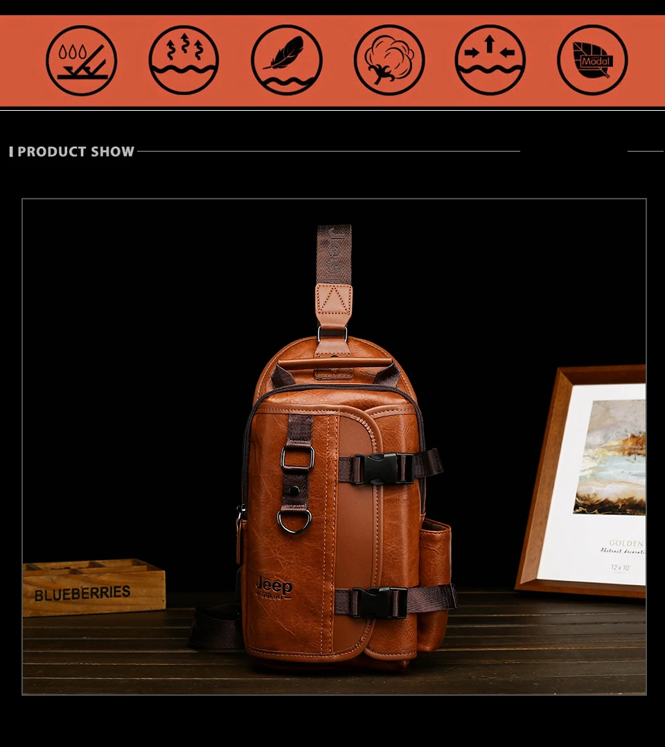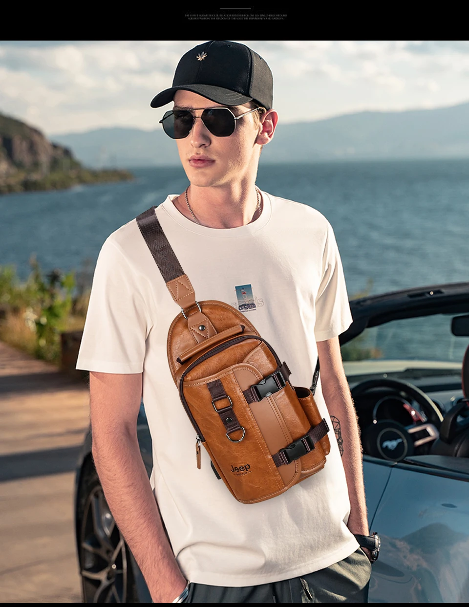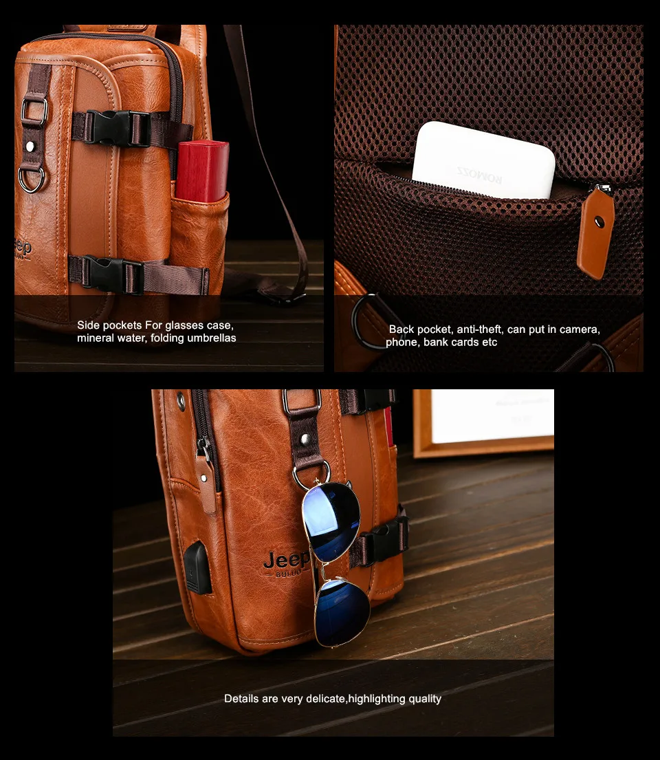 Мужская нагрудная сумка JEEP BULUO, оранжевая сумка для iPad 9,7 дюйма, с USB-зарядкой, водонепроницаемая слинг-сумка для коротких поездок, все сезоны,