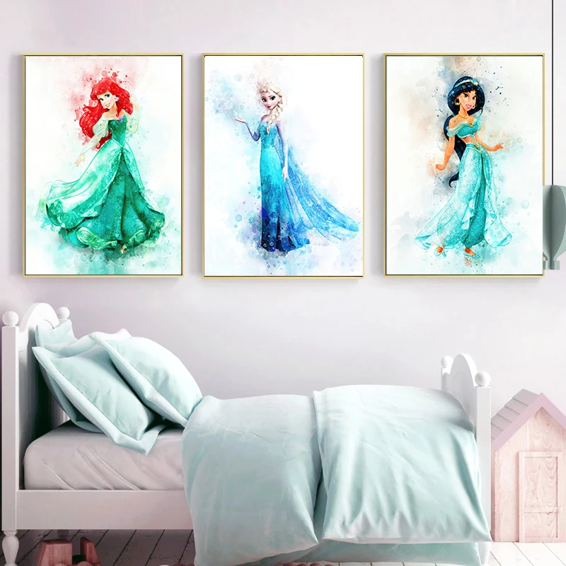 Disney мультфильм принцесса холст живопись скандинавские стены Искусство Куадрос модульные плакаты и принты домашний декор девушка комната картины
