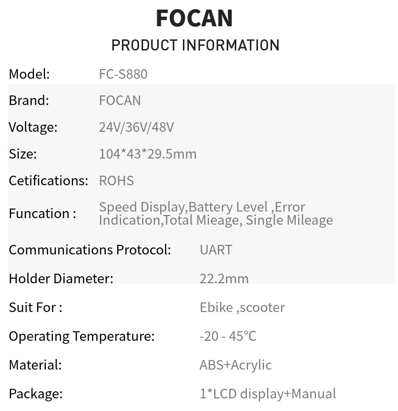 FOCAN Ebike ЖК-дисплей дроссельная заслонка для электрического скут...