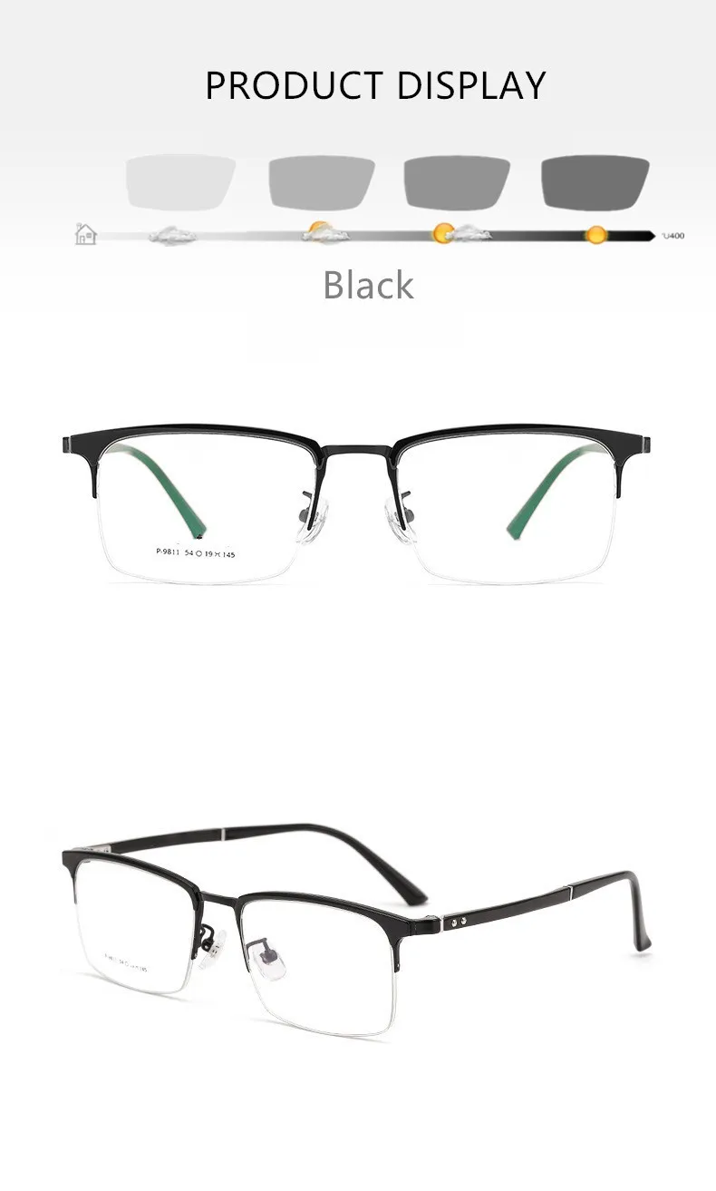 Мужские фотохромные очки для чтения, деловые повседневные компьютерные очки с титановой полуоправой, зеркальные уличные очки для чтения, 2020