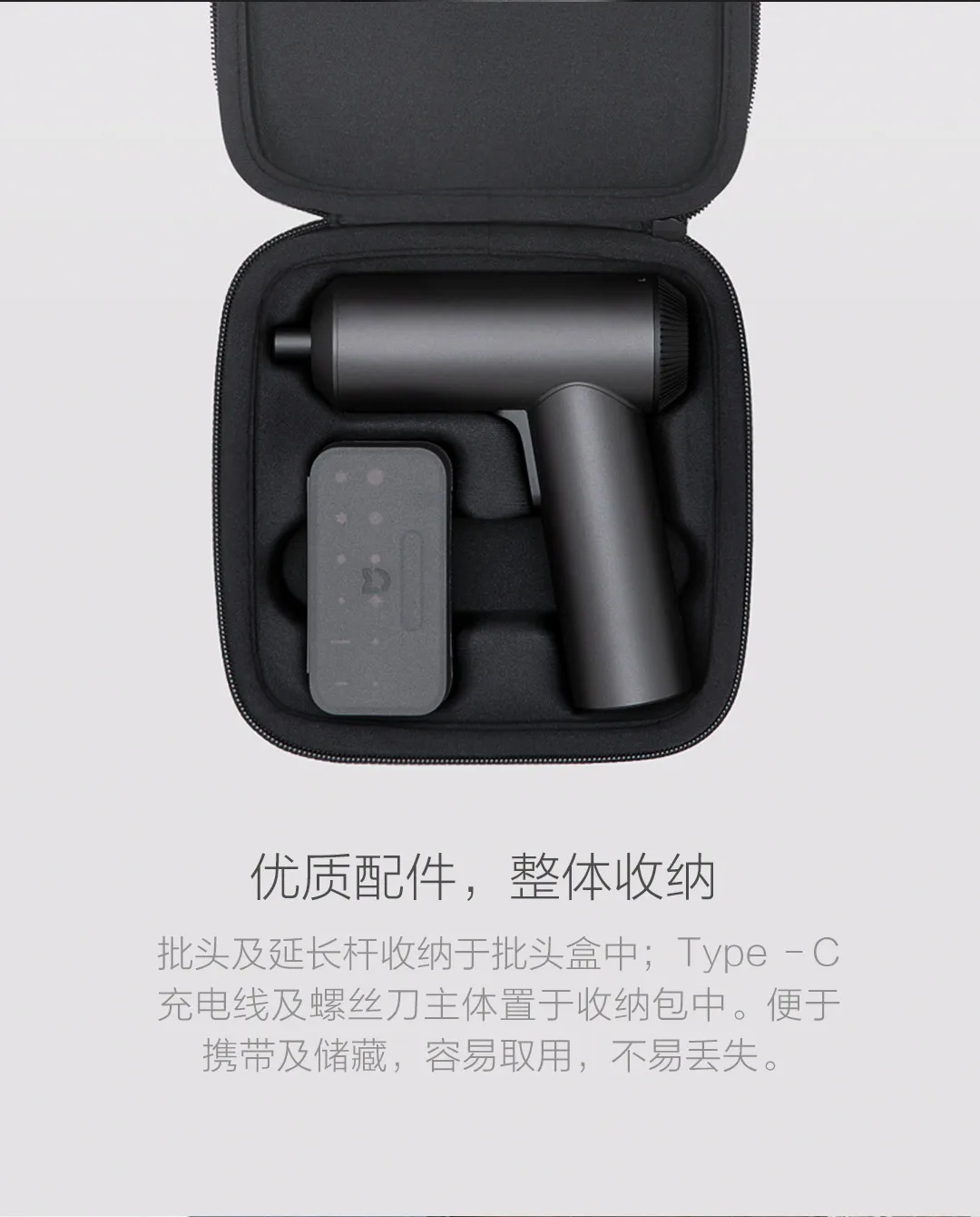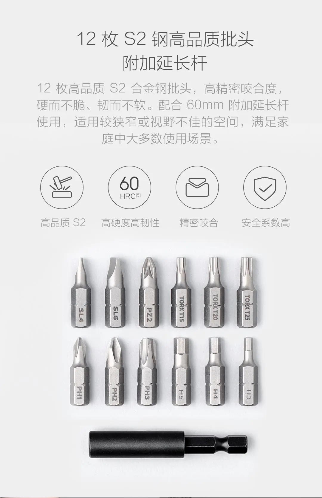 Шуруповерт XIAOMI Mijia аккумуляторный, 3,6 В, 2000 мА ч, 5 Н м, с 12 насадками S2