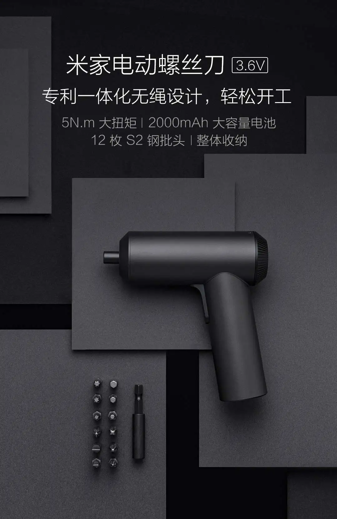 Аккумуляторная аккумуляторная отвертка XIAOMI Mijia, 3,6 В, 2000 мАч, литий-ионная электрическая отвертка 5N.m с 12 насадками S2 для дома