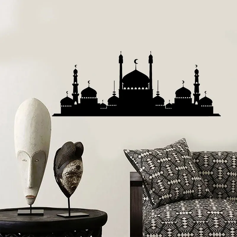 Виниловые наклейки на стены мечети Мусульманский Исламский, арабский город религиозные Стикеры росписи Семья Гостиная диван Настенный декор Спальня Стикеры MSL15