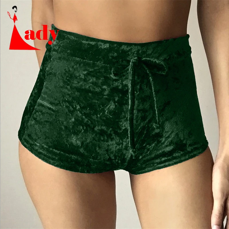 Женские бархатные шорты на шнуровке, повседневные сексуальные обтяг...