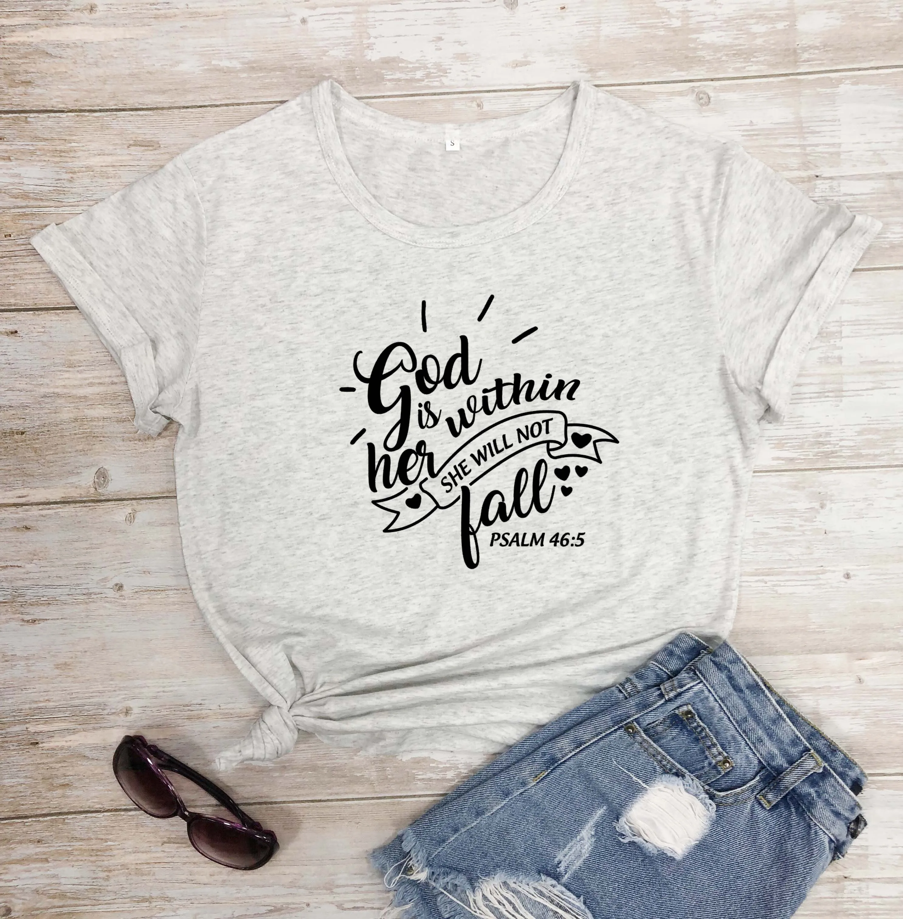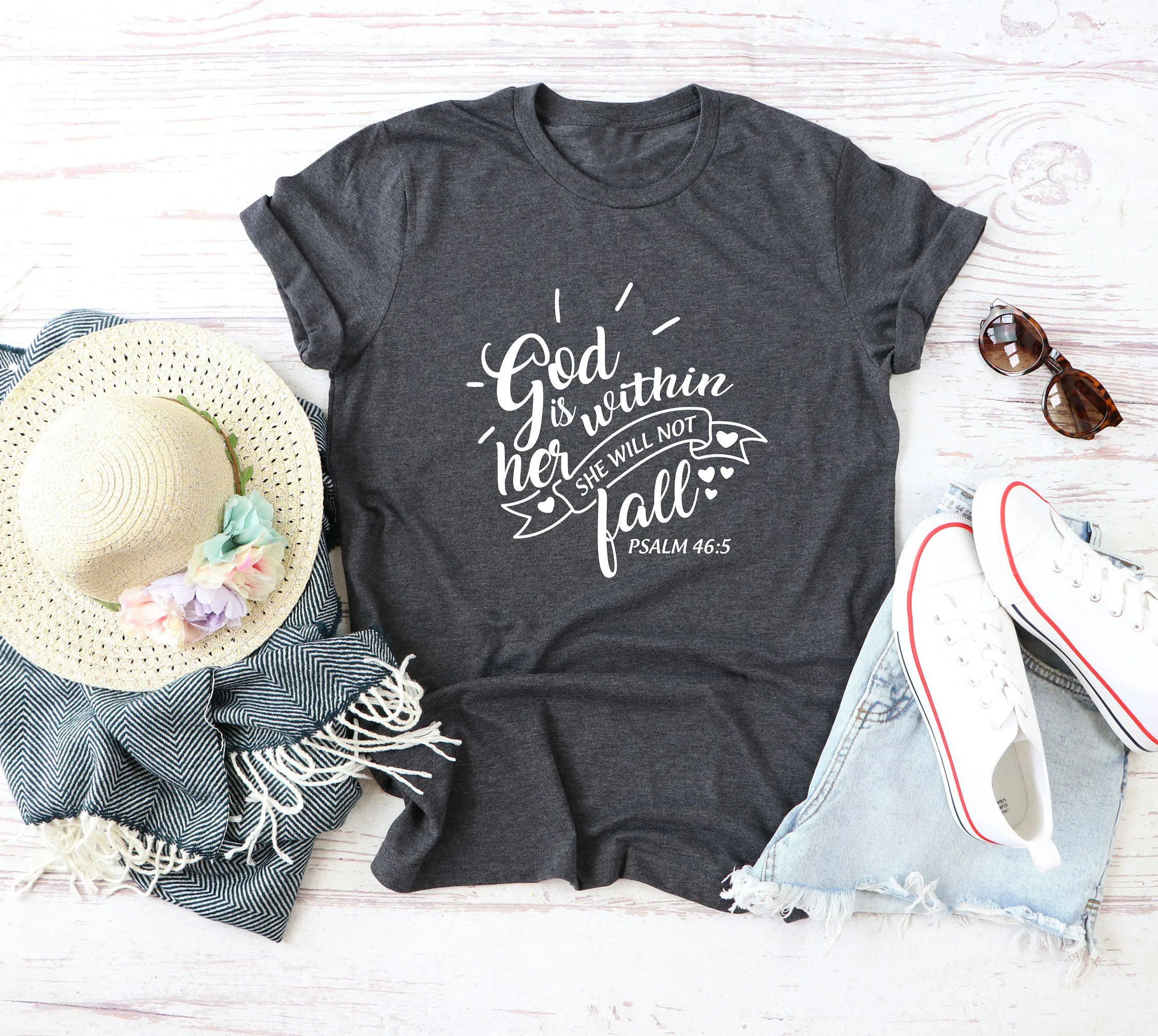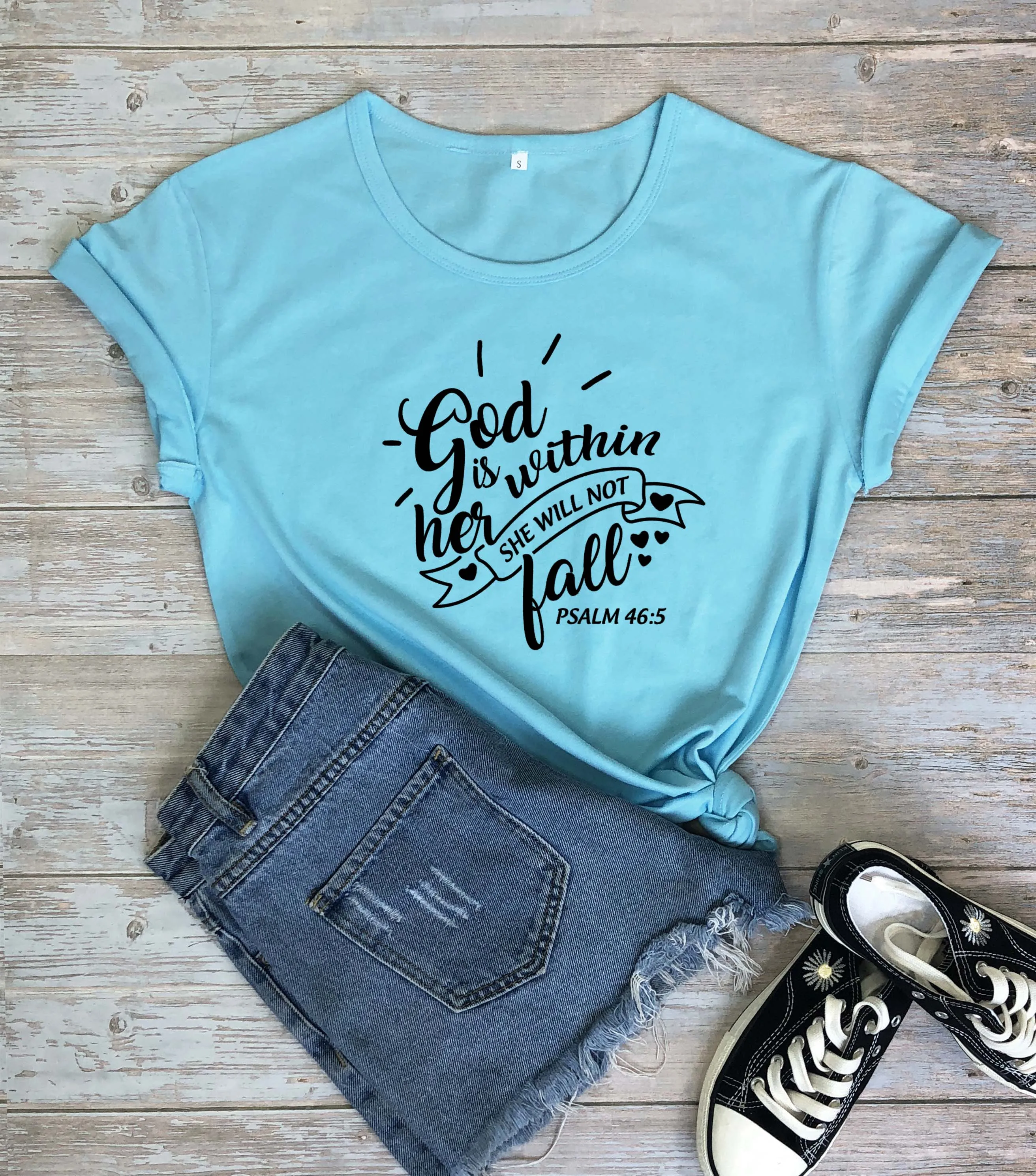 Футболки с надписью God Is inside Her, She Will Not Fall, хлопковые, с Иисусом, Псалом